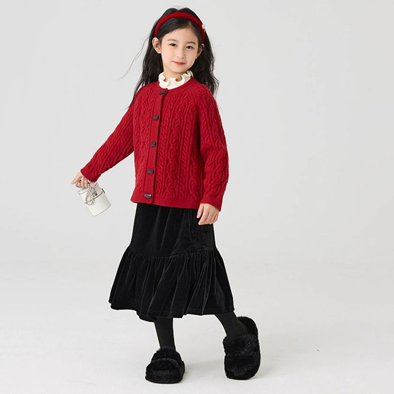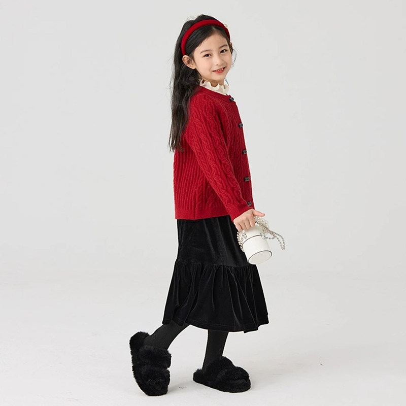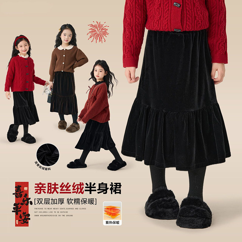 女童半身裙裙子秋冬冬季儿童金丝绒鱼尾半裙加厚大童黑色长裙毛衣