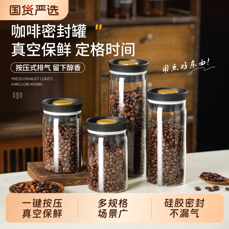 咖啡豆保存罐食品级真空玻璃密封罐咖啡粉储存罐茶叶收纳储物瓶罐