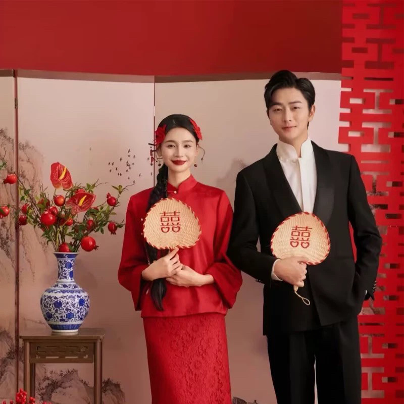 中式秀禾古风汉服婚纱摄影道具婚礼拍照结婚晨拍新娘刺绣喜字蒲扇