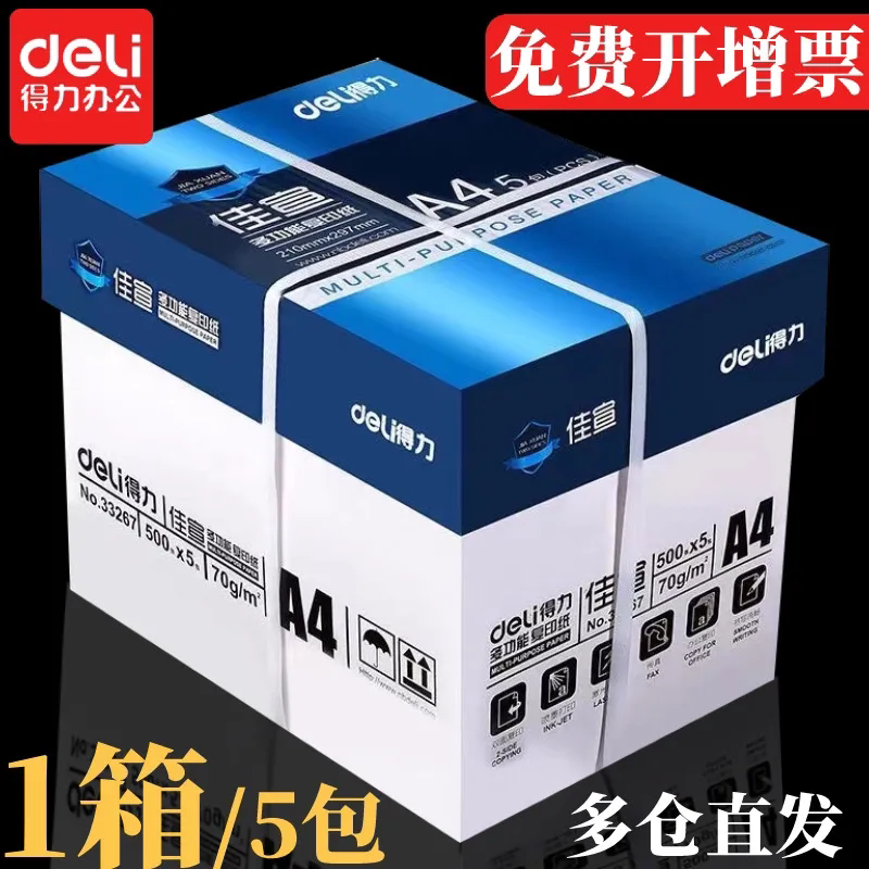 得力A4纸复印纸双面打印白纸草稿纸整箱批发办公用品