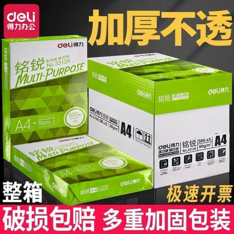 得力铭锐A4纸打印纸办公用品复印纸绘画纸学生草稿纸白纸整箱批发