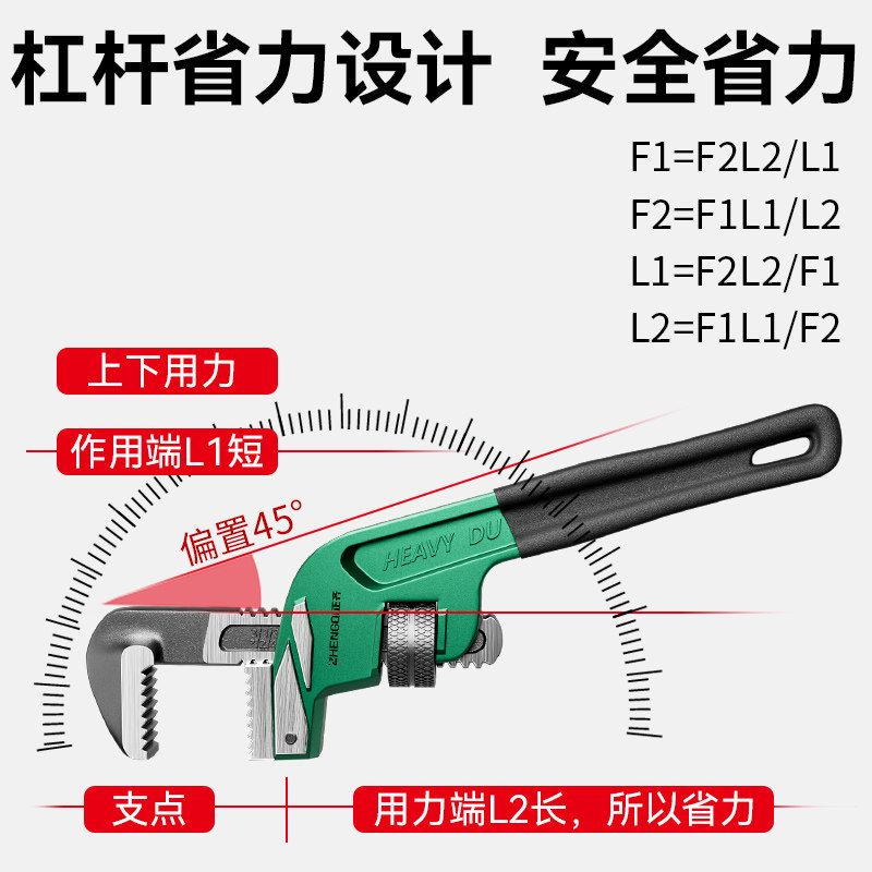 管钳多功能偏置扳手工业水管钳斜头管管子钳通用水暖工具重型喉钳