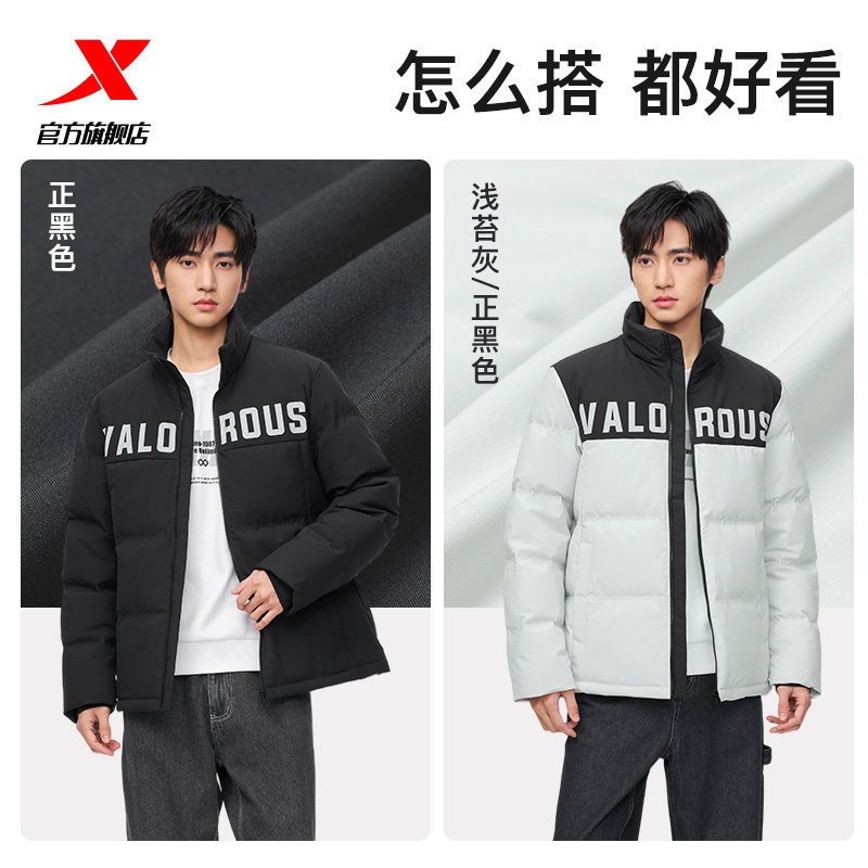 特步羽绒服男士2025年冬季新款男装运动防风保暖外套975429190200