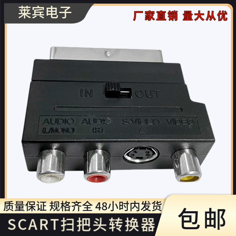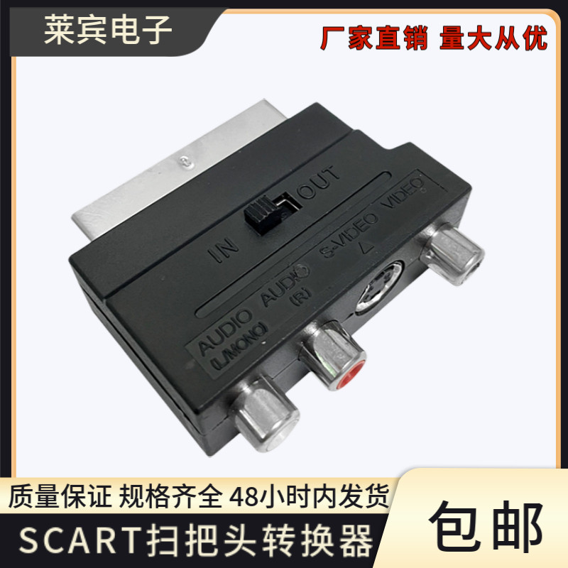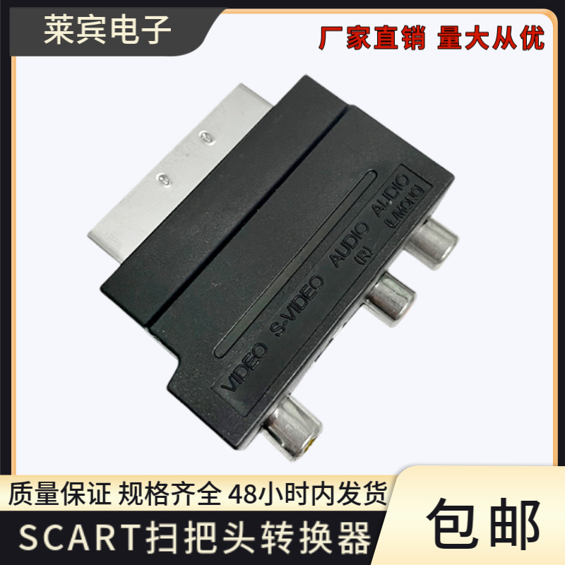 SCART扫把头转视频转换器S端子插头AV音视频欧式21P针转RCA色差线