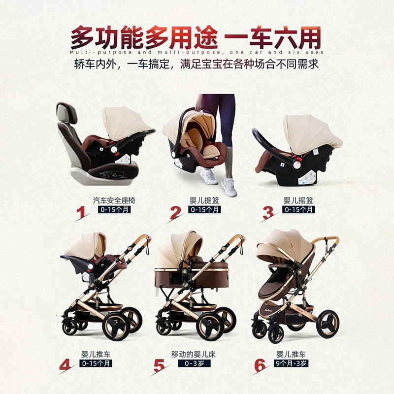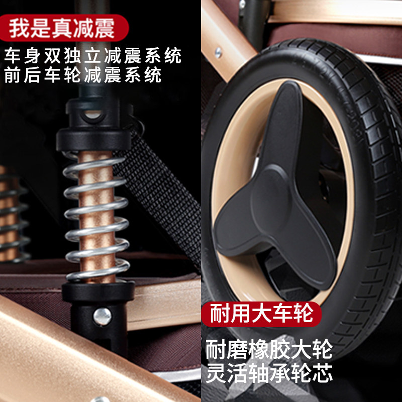 可折叠多功能可坐躺双向避震四合一婴儿推车