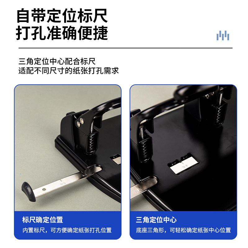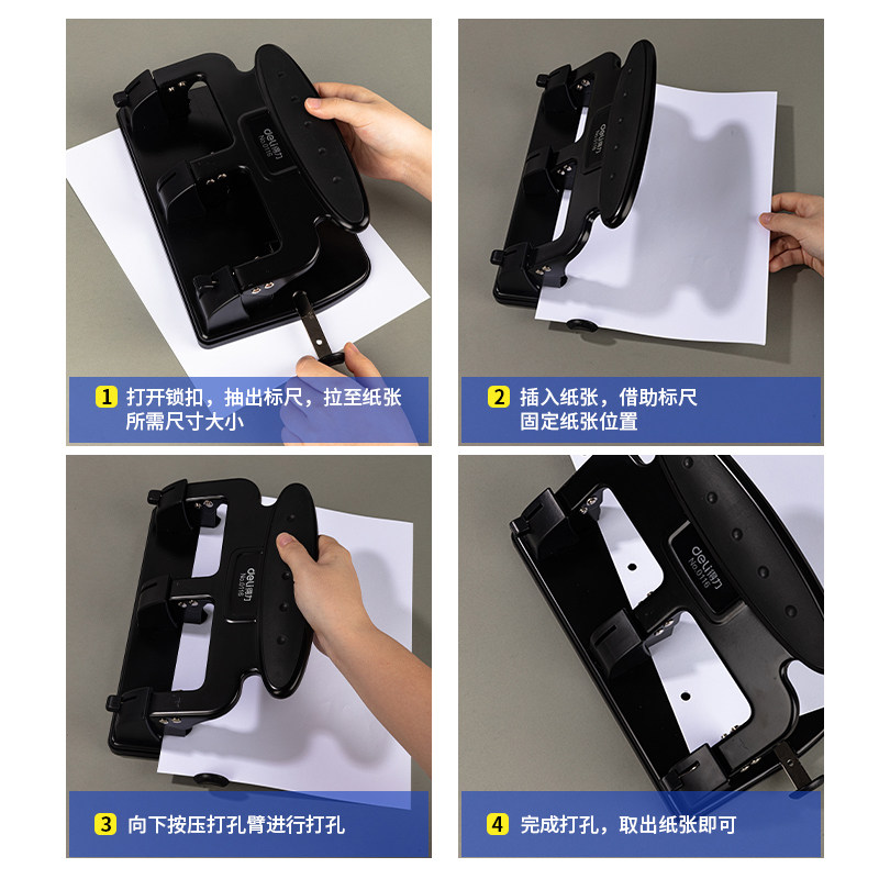 得力0116三孔打孔机可调节四孔办公装订机文件纸张3孔打洞器a4厚纸多孔学生多打眼夹圆环文具活页纸打圆孔