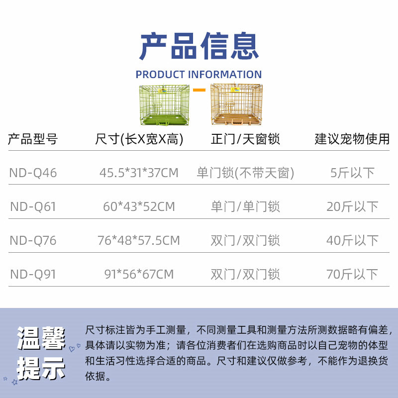乐佳宠物笼子价猫笼狗笼子兔笼大中小型犬带厕所室内折叠用品