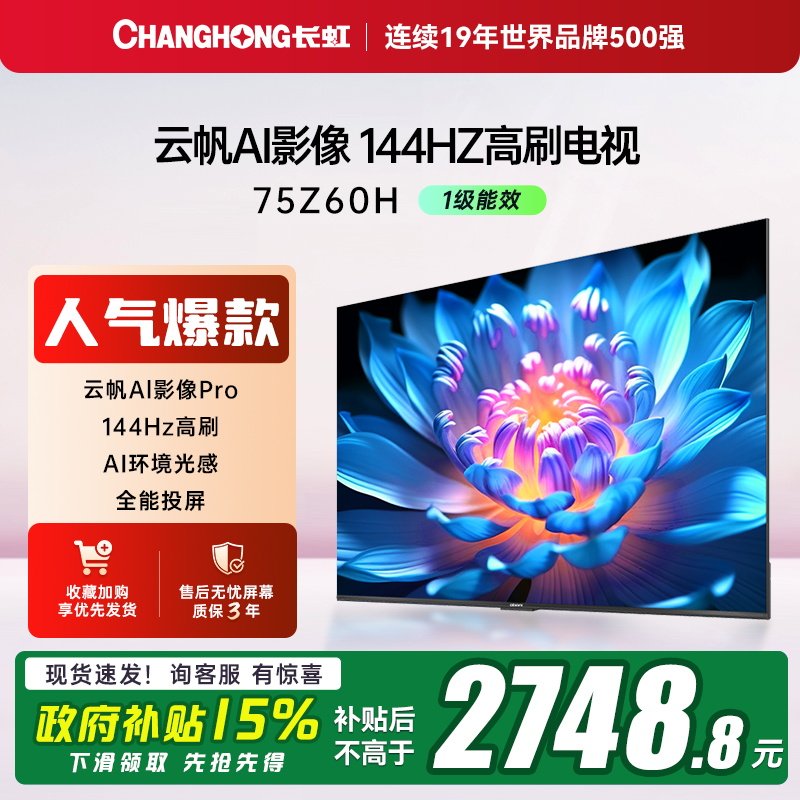 【政府补贴】长虹欧宝丽电视75Z60H 75英寸客厅家用智能电视机