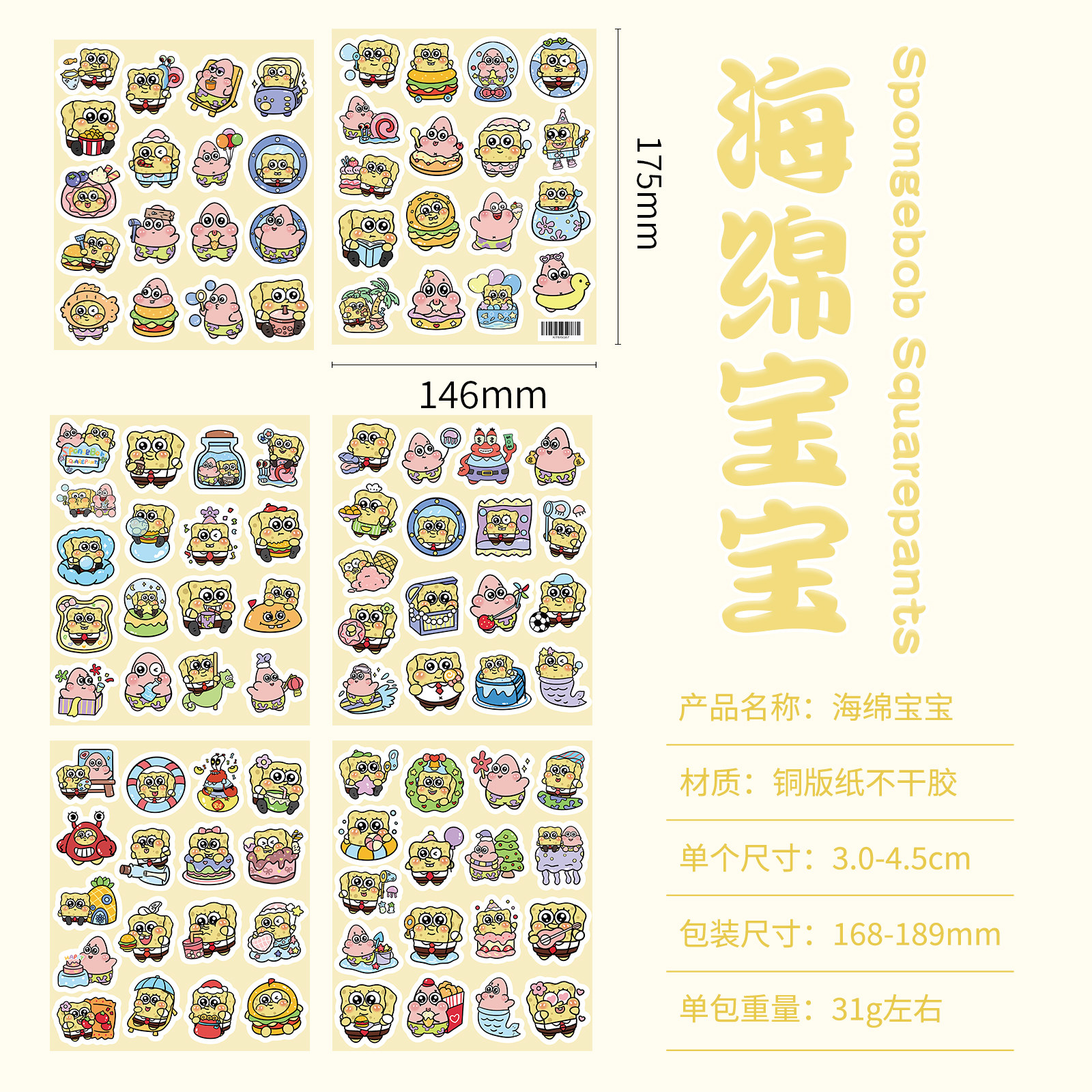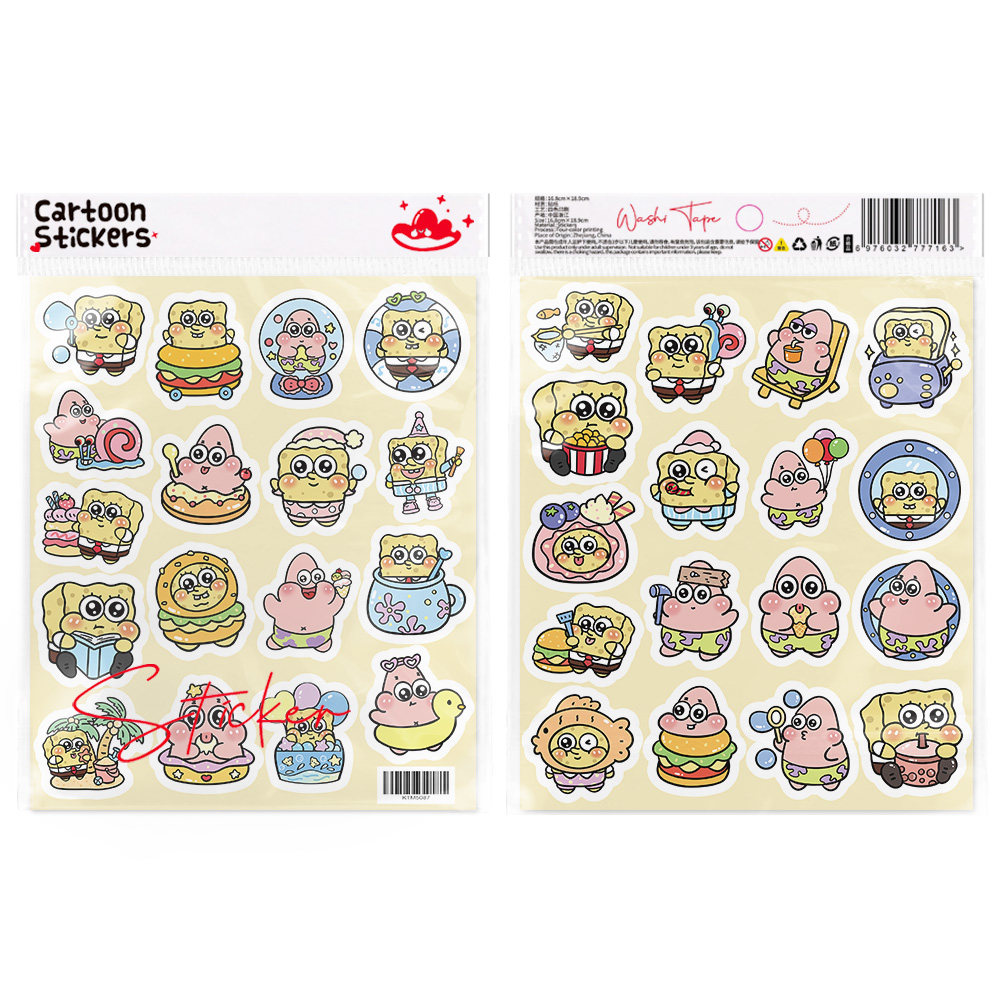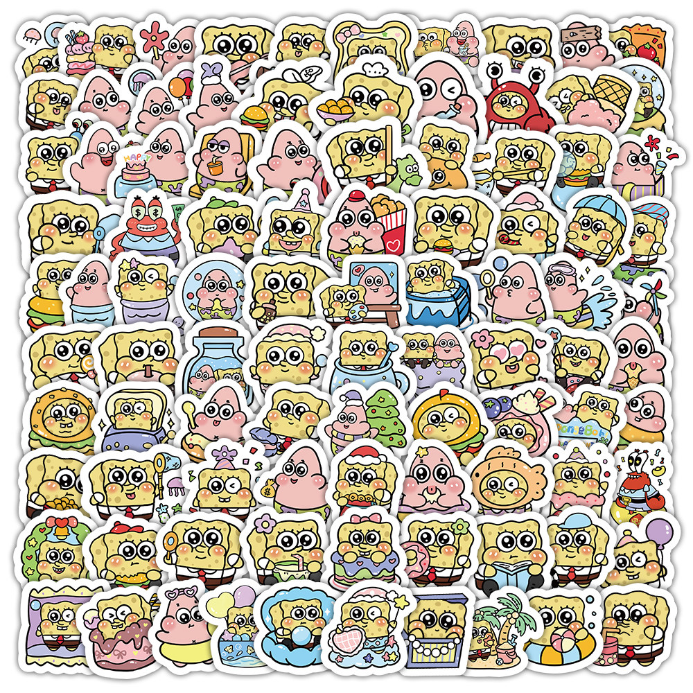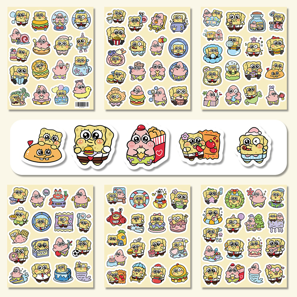 204张海绵宝宝派大星卡通动画贴纸手账本装饰手机行李箱标签贴画