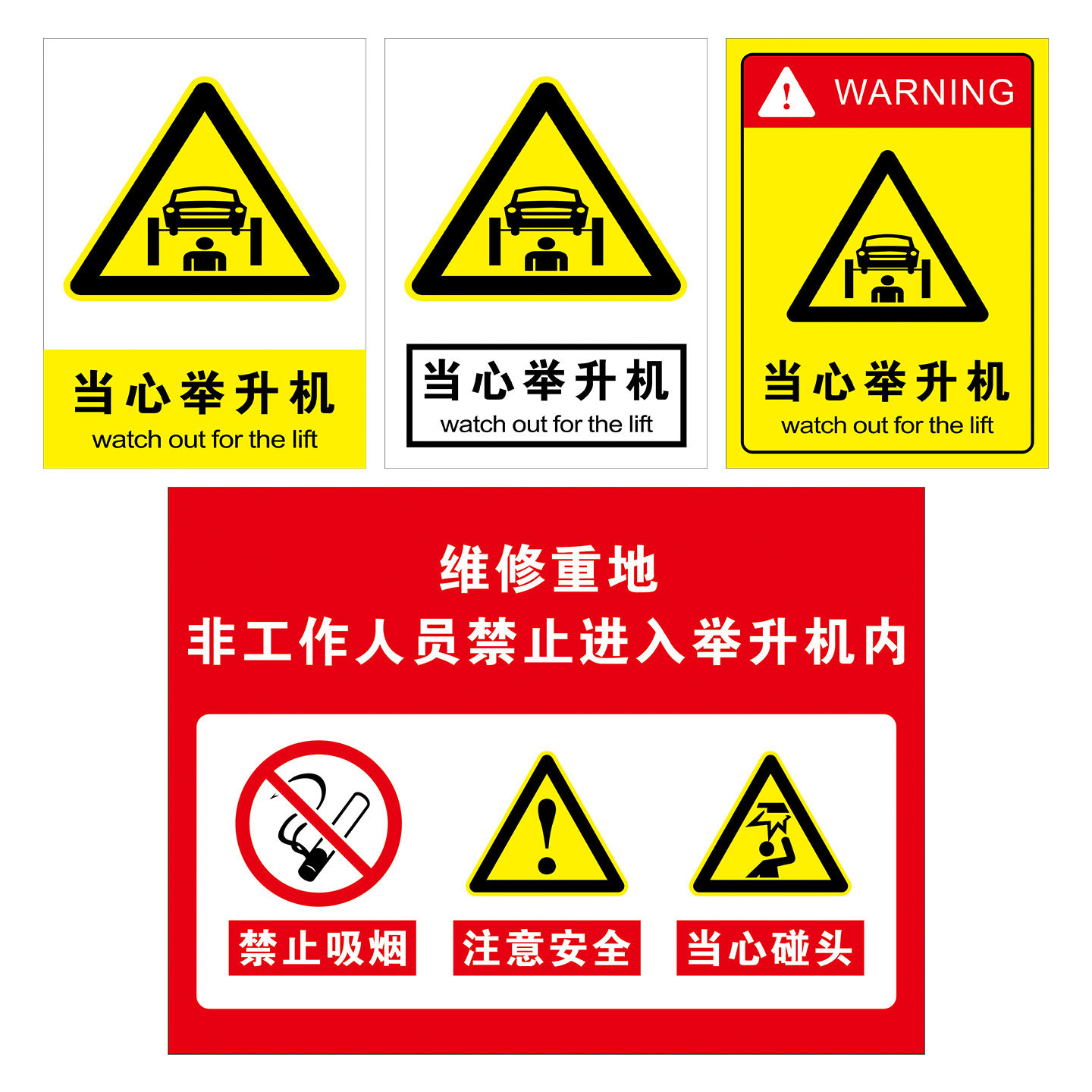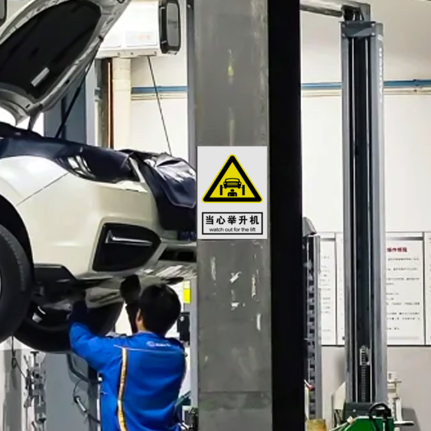 当心举升机安全标识牌汽修安全警示牌汽车维修安全警示牌维修重地非工作人员禁止进入举升机内提示标示牌