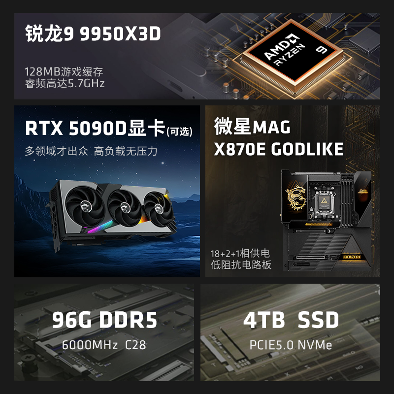 【24期免息】AMD主机7800X3D/9800X3D/9950X3D/RTX5090D/5080/9070XT台式电脑整机电竞游戏DIY组装机电脑套件