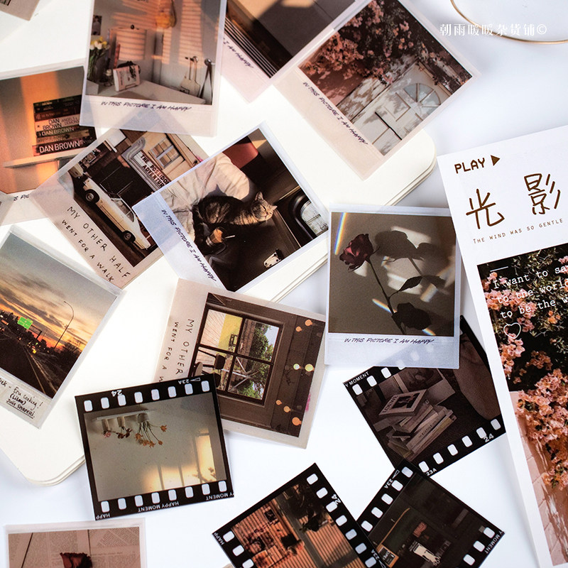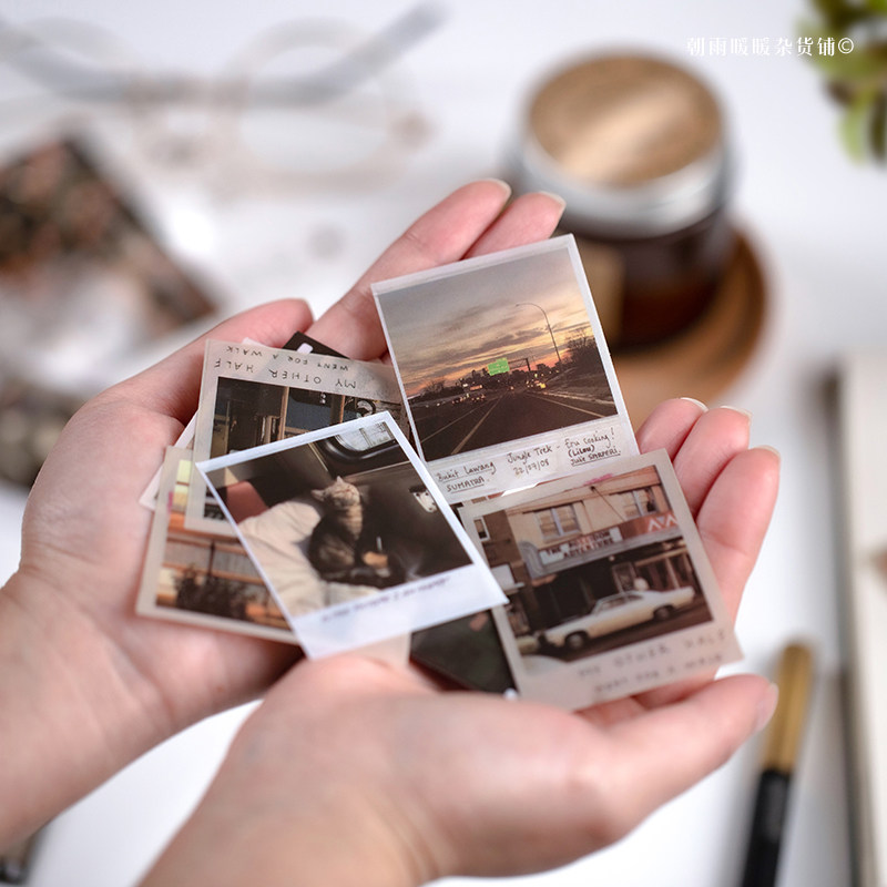 朝雨 文艺摄影贴纸ins风猫咪玫瑰风景素材手帐手机壳水杯装饰贴画