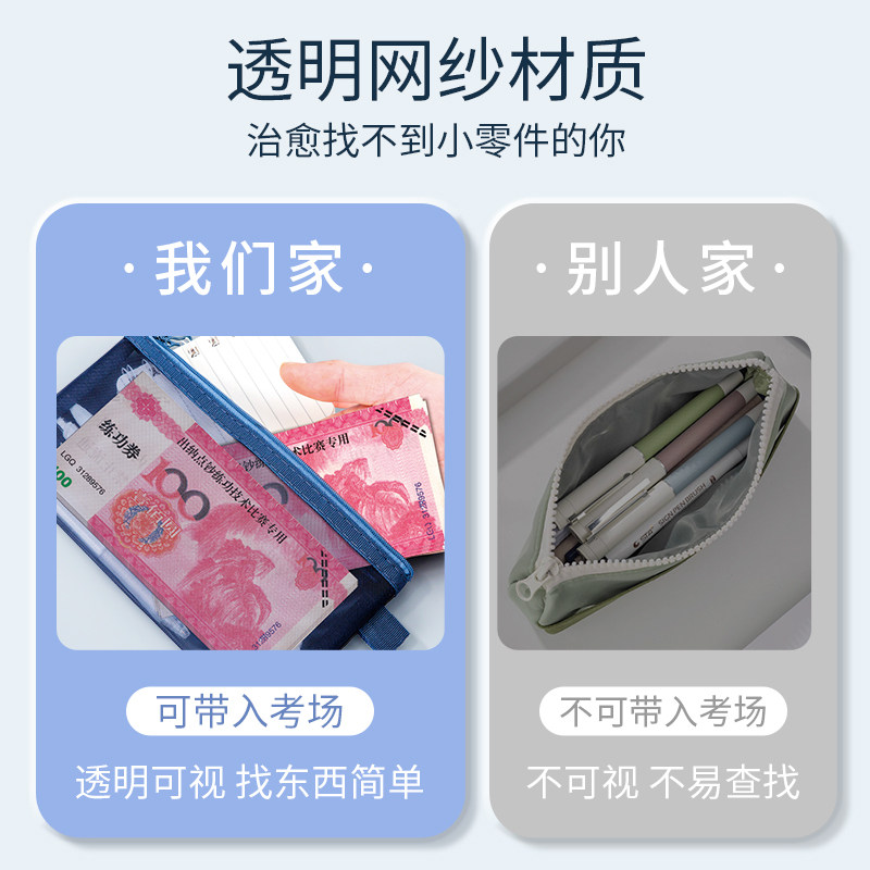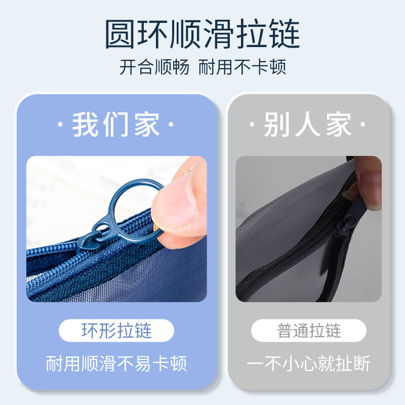 晨光文具学科科目分类袋小学生文件袋拉链式试卷收纳袋透明网纱双层大容量书袋作业资料a4考试专用袋票据产检