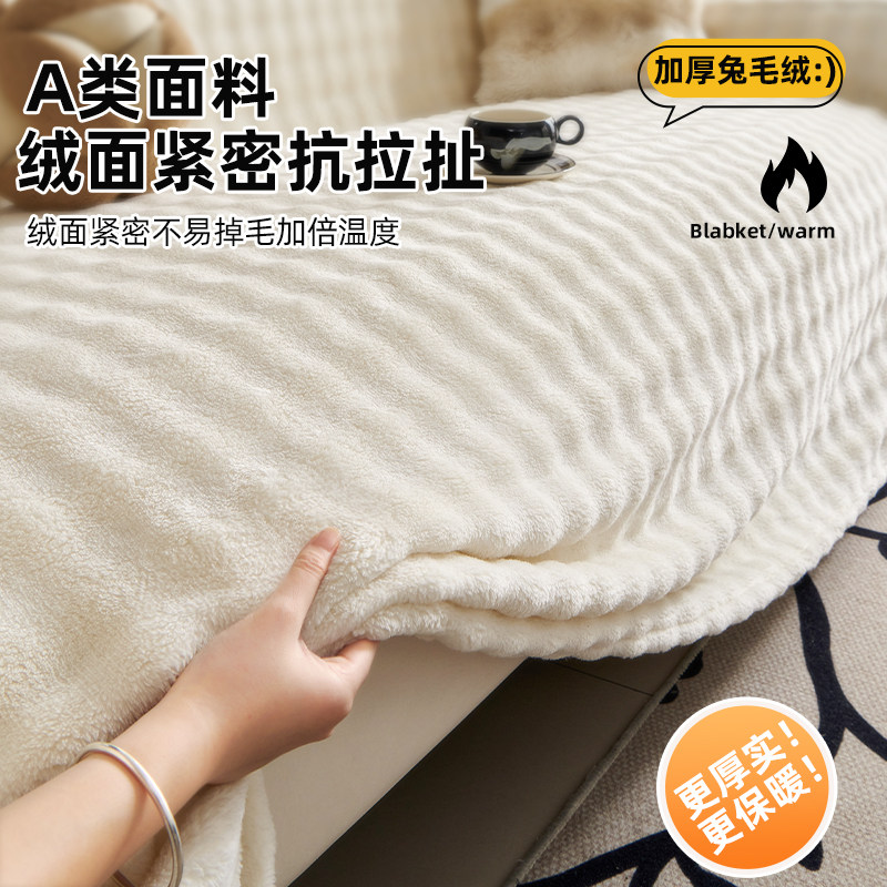 沙发套高级感轻奢兔兔绒加厚纯色防猫抓防尘沙发巾盖毯四季通用新