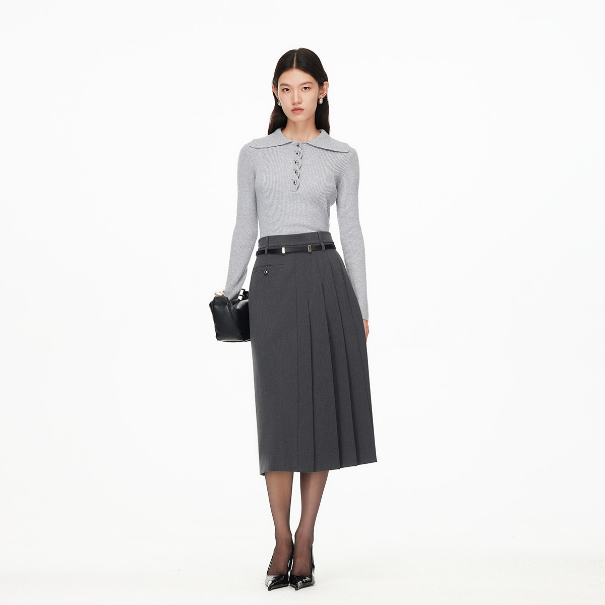 LIMONN |秋冬多颜色经典高腰显腿长A字百褶半身裙长裙