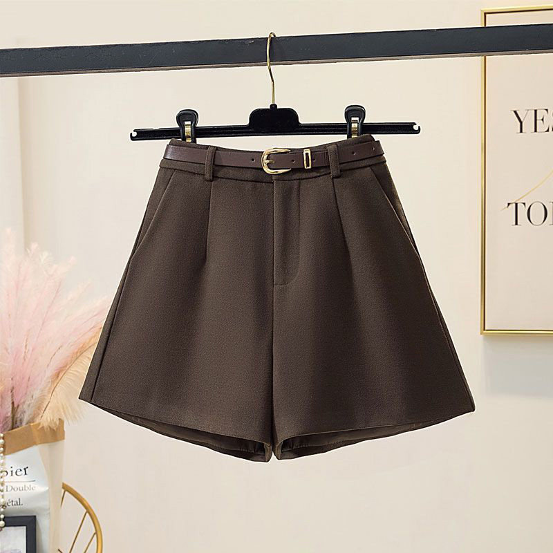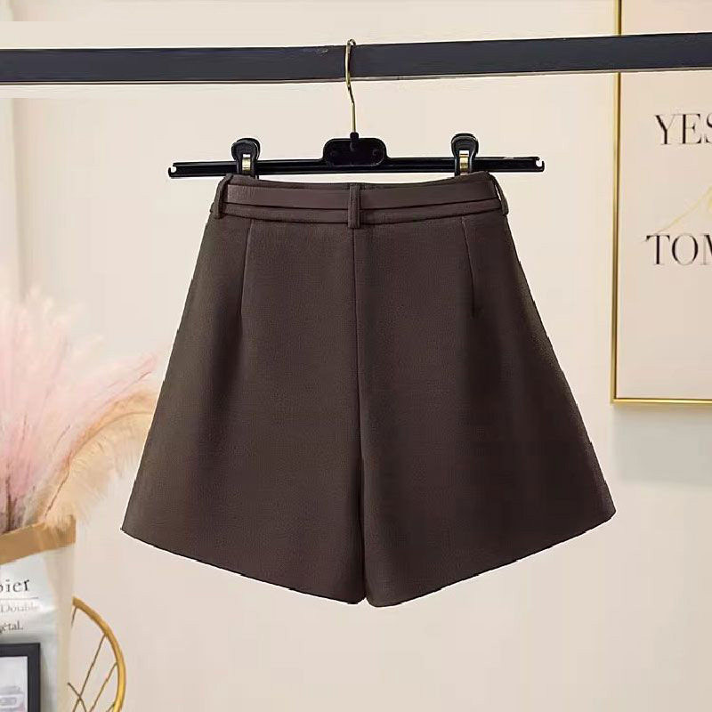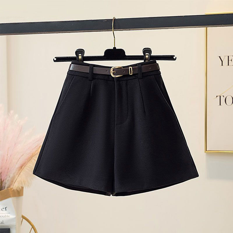 韩版毛呢短裤女2026新款外穿靴裤高腰遮肉显瘦大码裤子A字阔腿裤