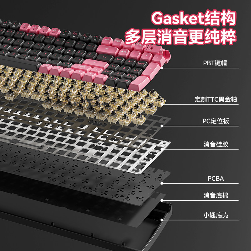 佐赫ZH980黑透蜘蛛网机械键盘电竞游戏有线蓝牙客制成品静音键盘