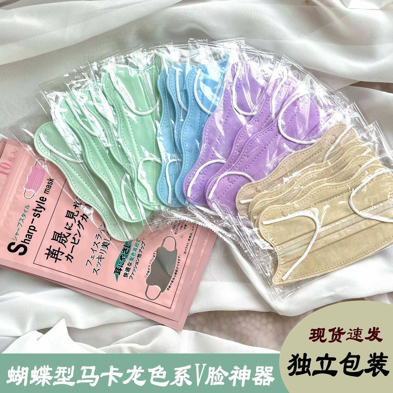 V脸蝶形口罩波浪形莫兰迪高颜值口罩ins时尚简约一次性独立包装