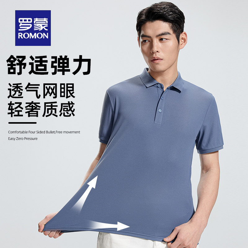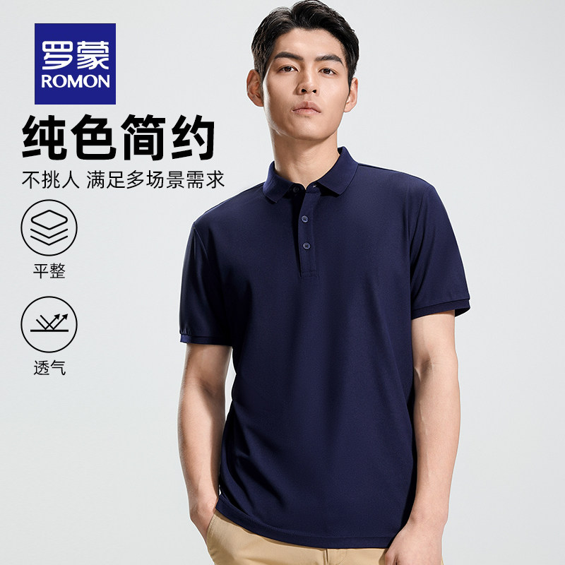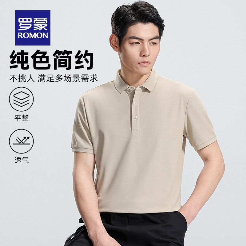 罗蒙男士商务短袖POLO衫2026夏季薄款休闲百搭纯色宽松翻领T恤衫