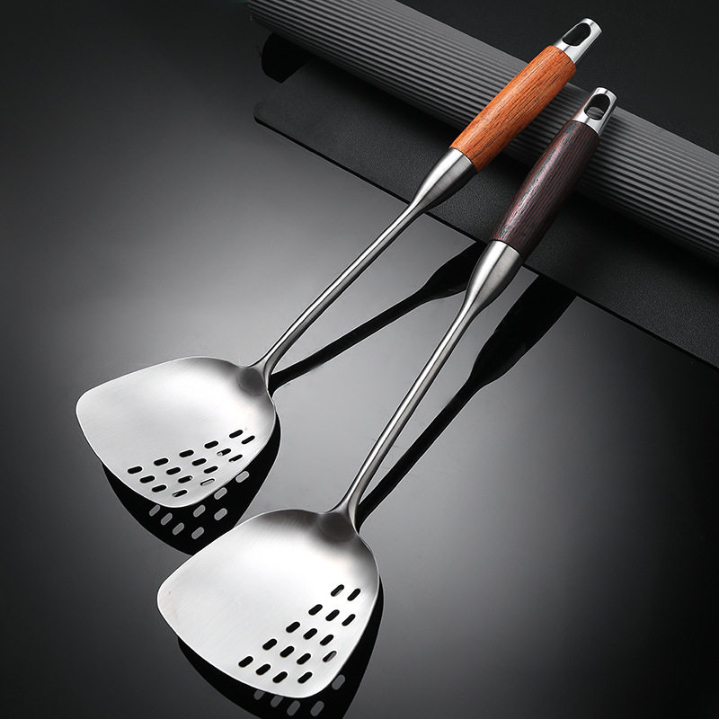 实木手柄多功能镂空锅铲不锈钢锅铲炒菜勺汤勺铲子漏勺
