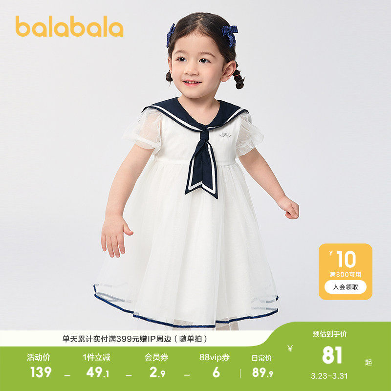 巴拉巴拉童装女童裙子儿童连衣裙夏装小童宝宝网纱公主裙蝴蝶结甜