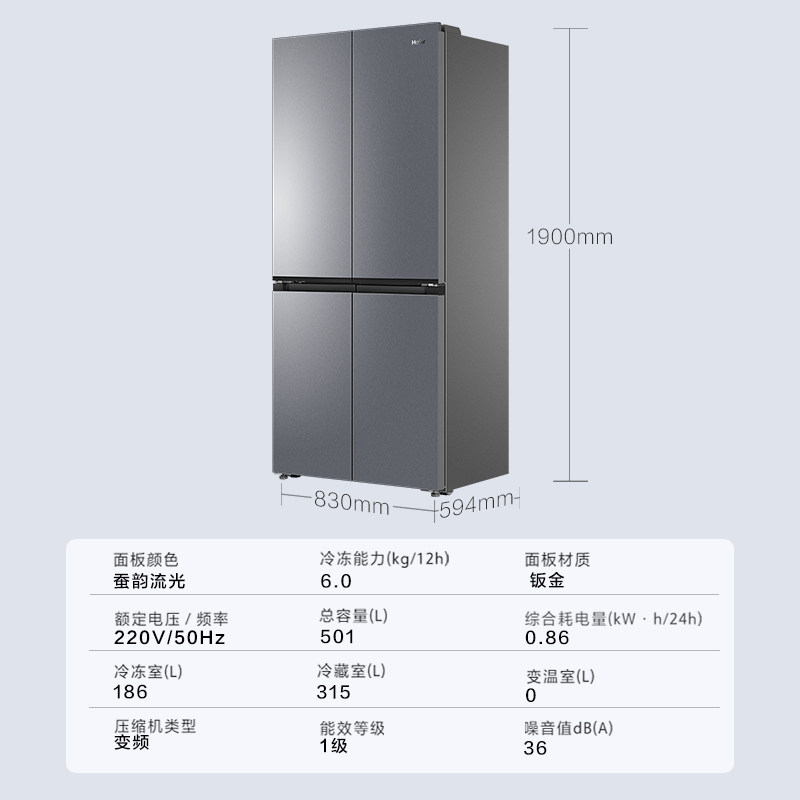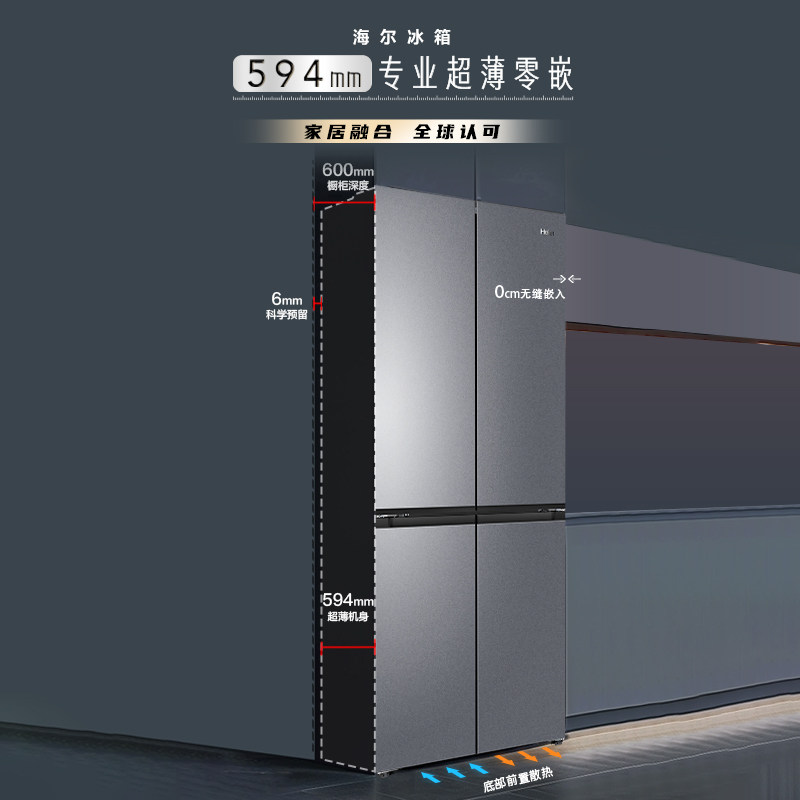 以旧换新补贴海尔501L十字双开门超薄零嵌入式冰箱家用无霜一级