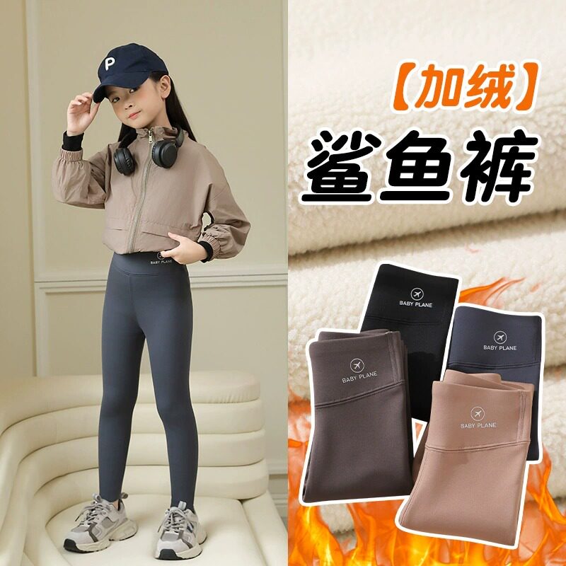 女童鲨鱼裤春秋薄绒裤子2025新冬季加厚打底裤儿童芭比裤黑色特厚