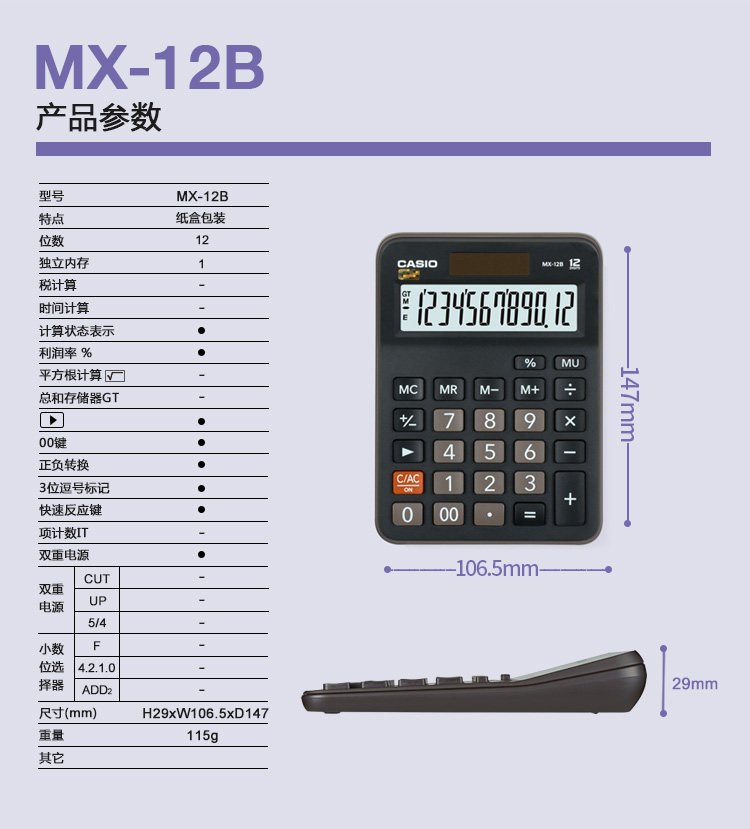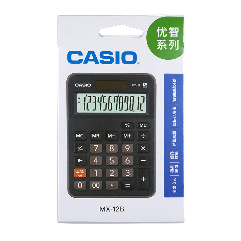 CASIO卡西欧MX-12B太阳能12位数 台式商务 办公计算器 小号