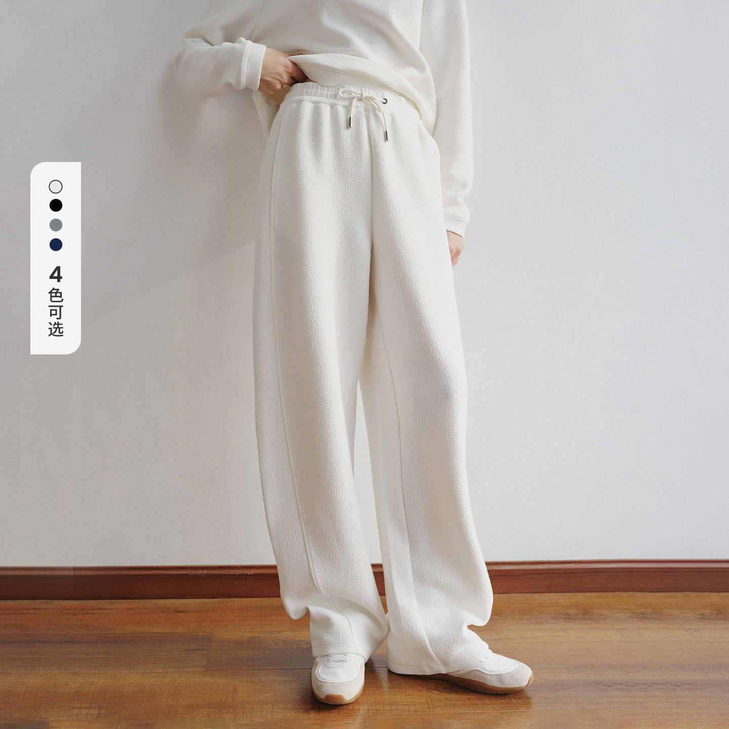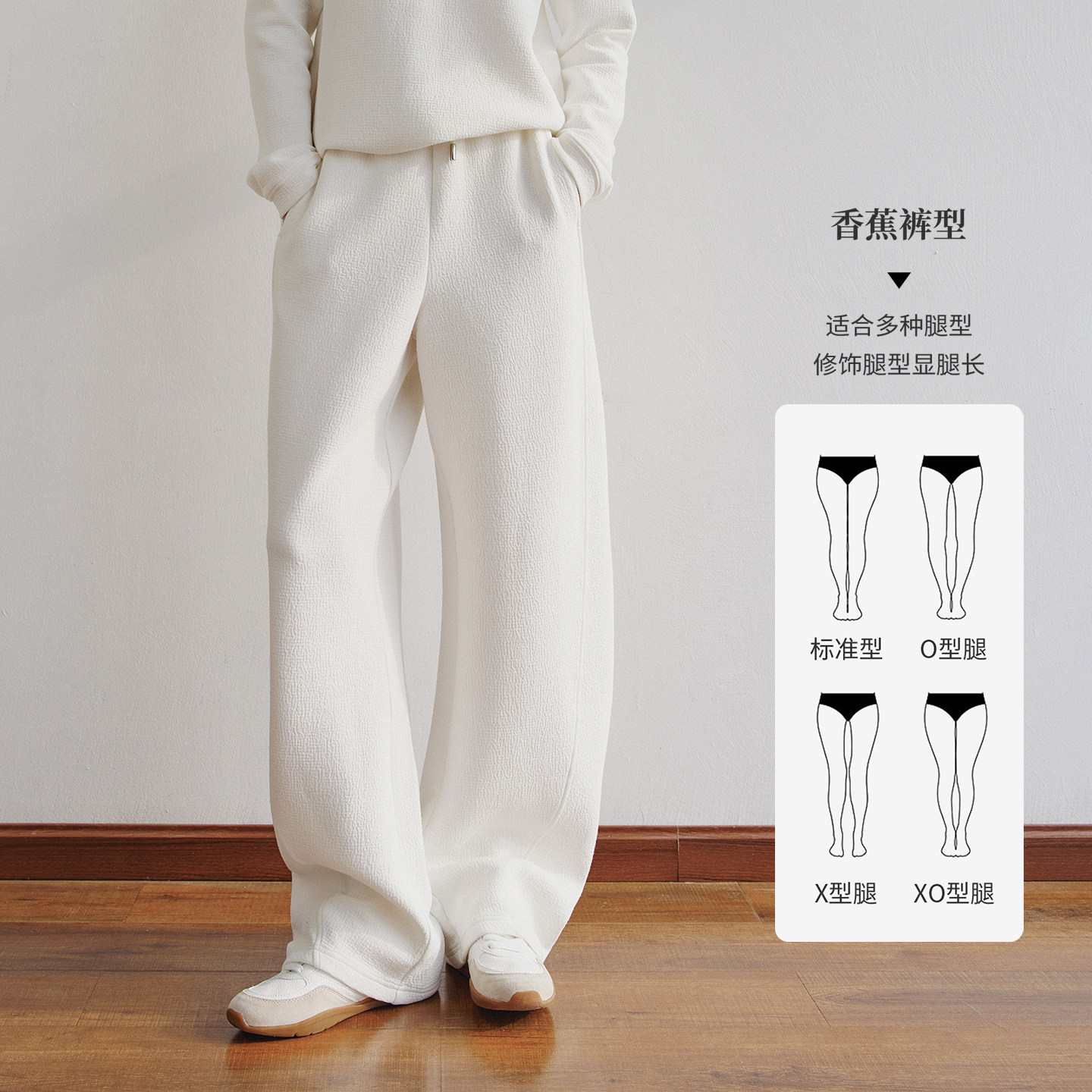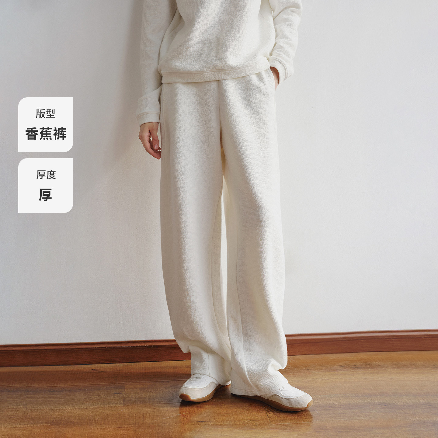 SIINSIIN弯刀卫裤2025新款女冬加绒垂感长裤运动休闲加厚裤子白色