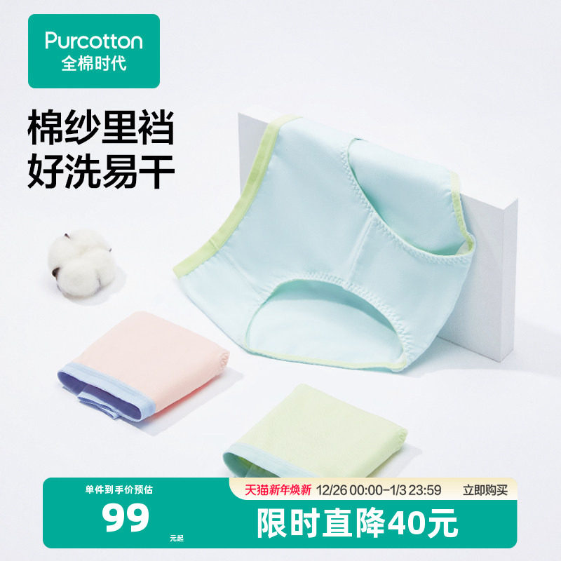 全棉时代女士纱布里裆抗菌内裤纯棉底档中腰三角内裤秋冬不夹臀