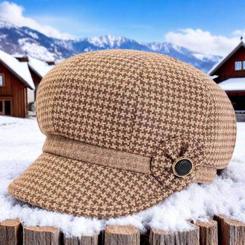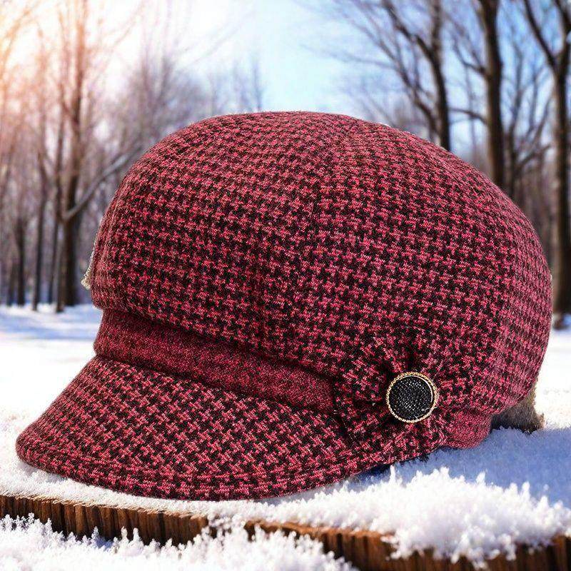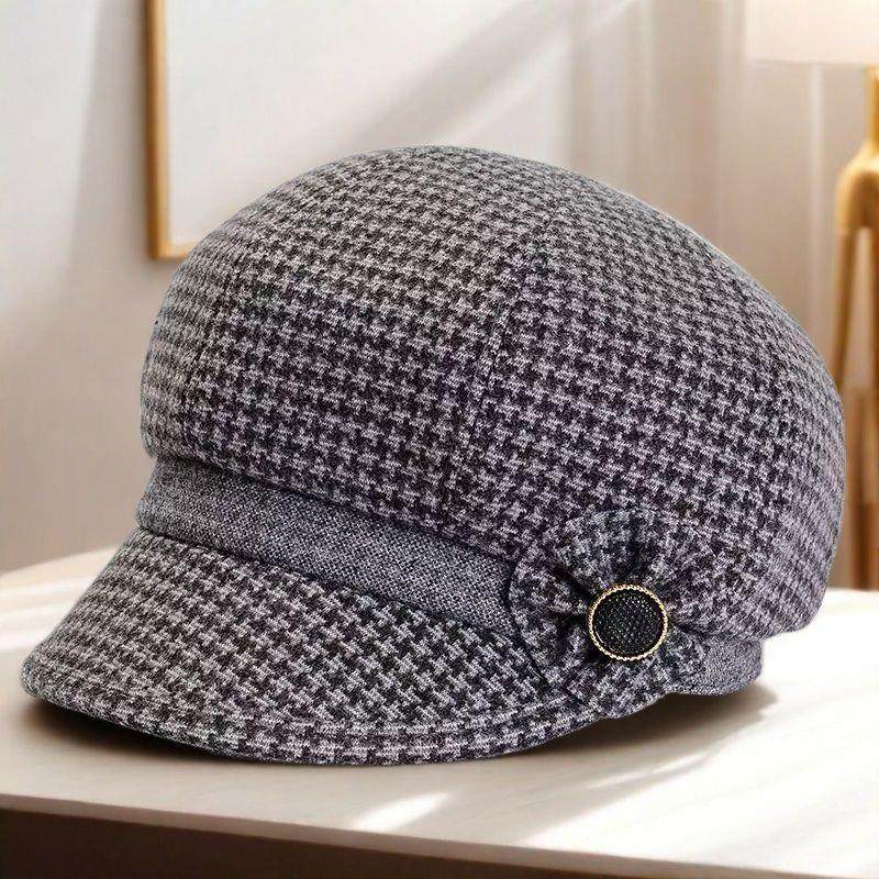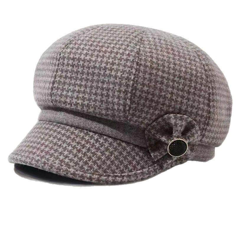 韩版时尚贝雷帽女秋冬加厚防风八角帽日系优雅格子鸭舌帽批发奶奶