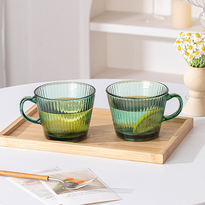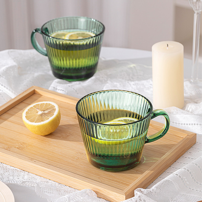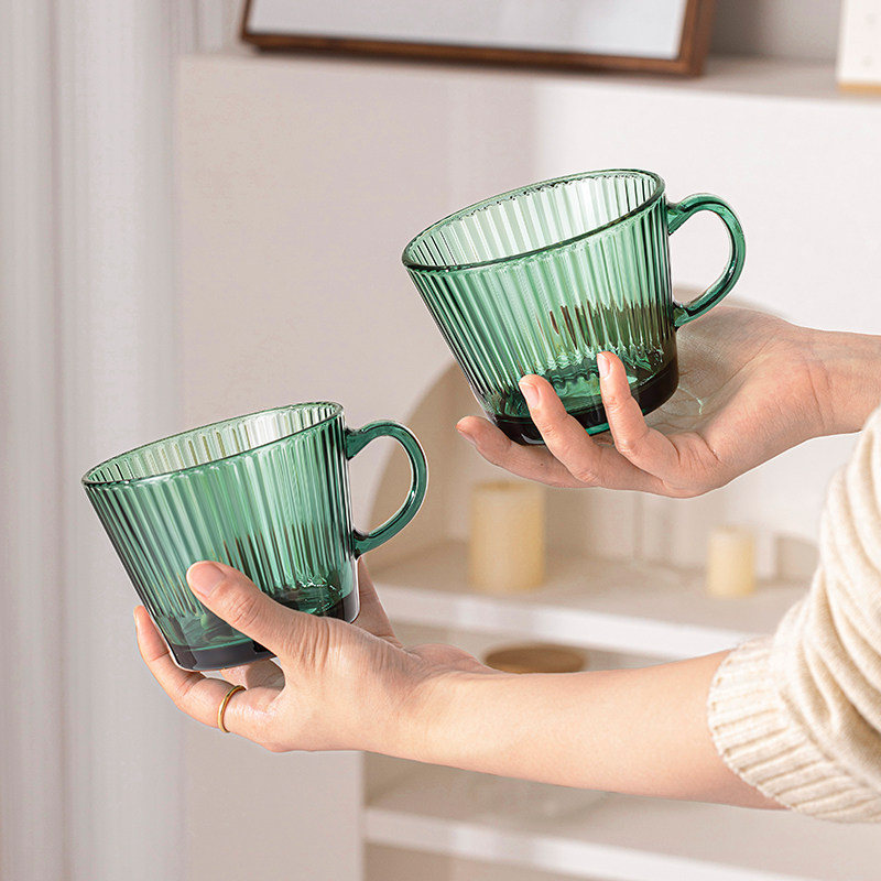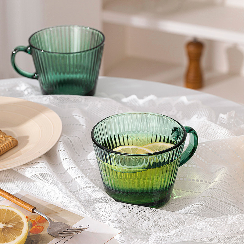 乐唯诗墨绿早餐玻璃杯原色带把高颜值大容量水杯燕麦特别好看的