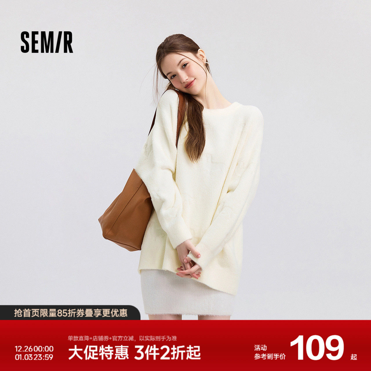 森马毛衣女冬季oversize小狗提花圆领软糯毛衫慵懒风温柔甜美上衣