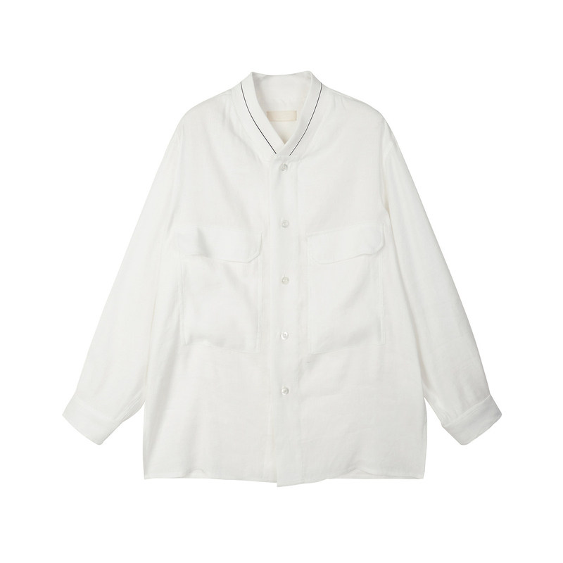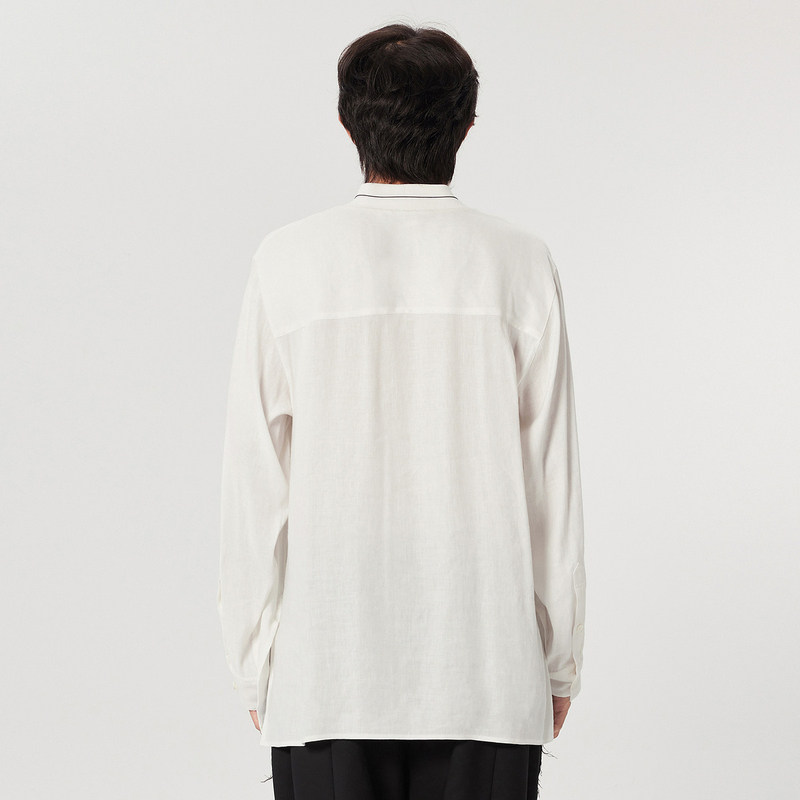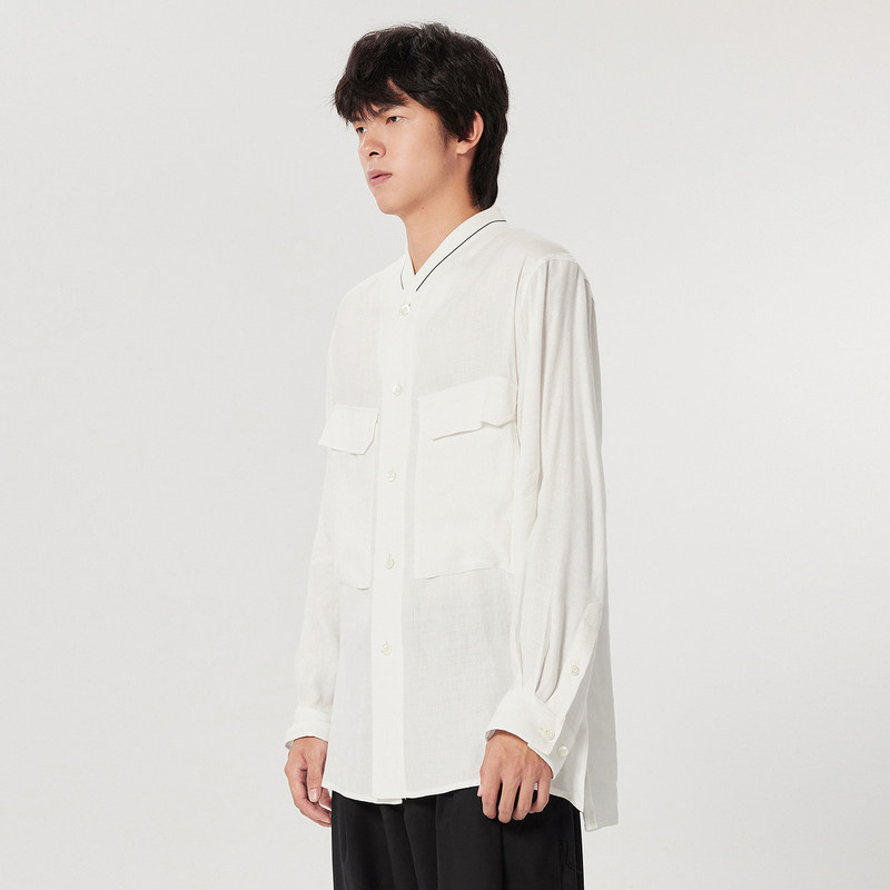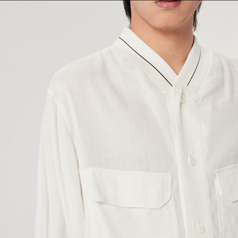 速写outlets奥莱男装春秋折扣新款衬衣立领长袖白色衬衫亚麻混纺