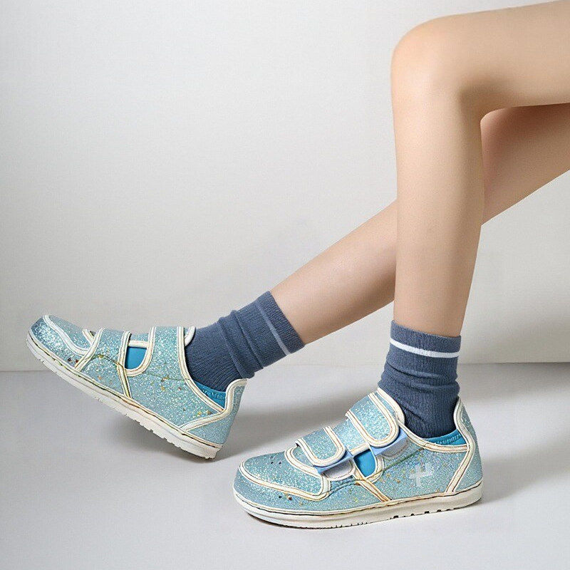 2025超火女休闲鞋小众厚底宽头鞋亲子板鞋大头魔术贴亮片丑萌鞋潮