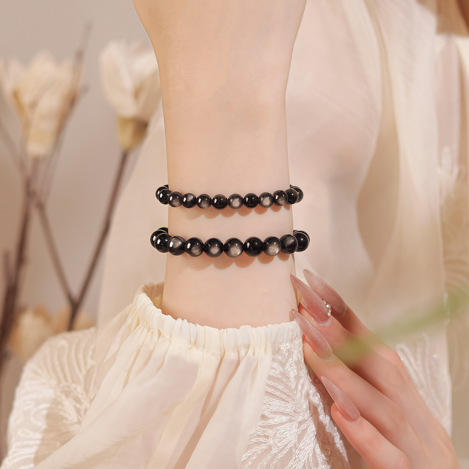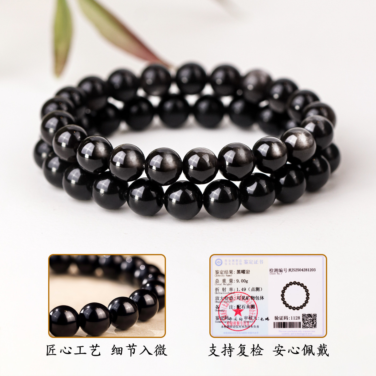 天然银曜石手链女款乌金黑曜石手串男士收藏级转运情侣爆闪