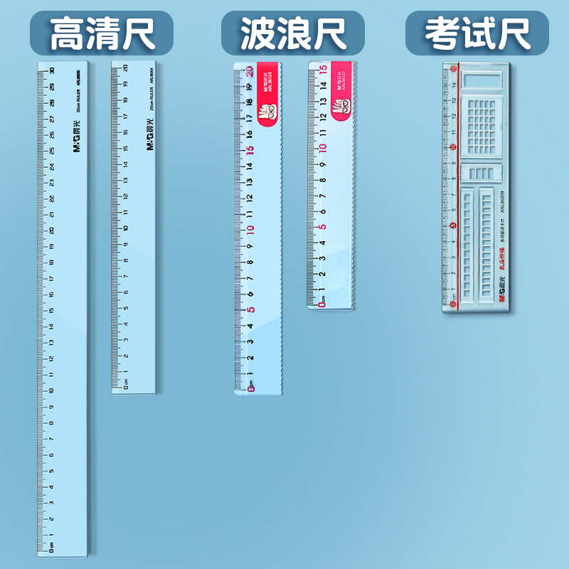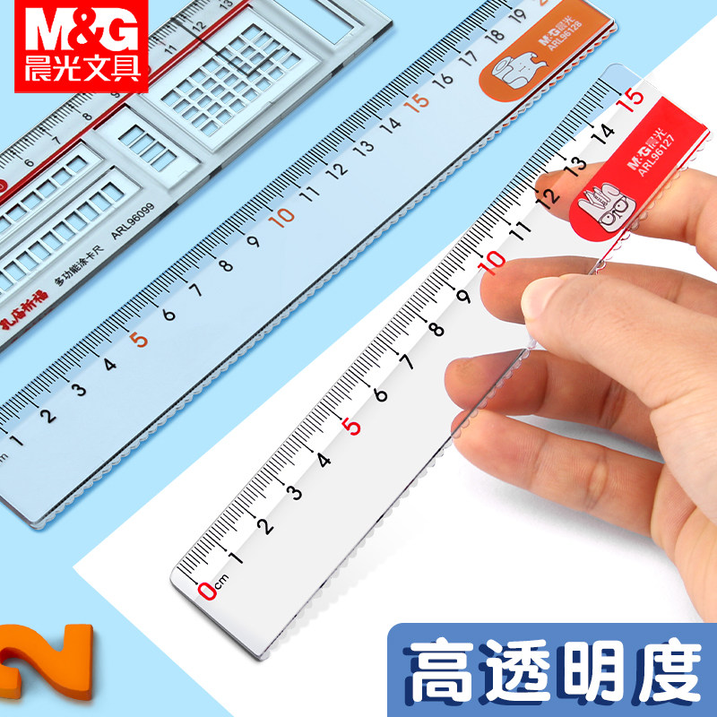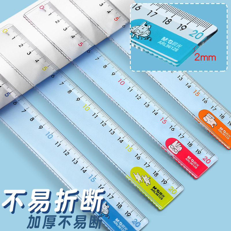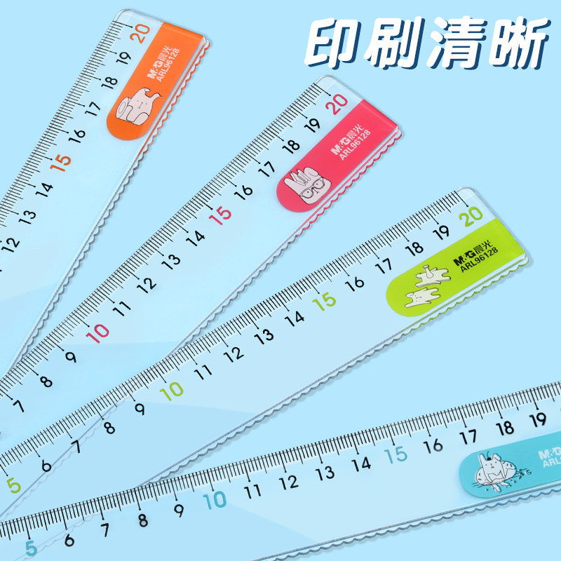 晨光办公直尺塑料带波浪线绘图测量透明15公分格尺喀什专用尺15/20/30cm多规格小学生文具加厚板尺