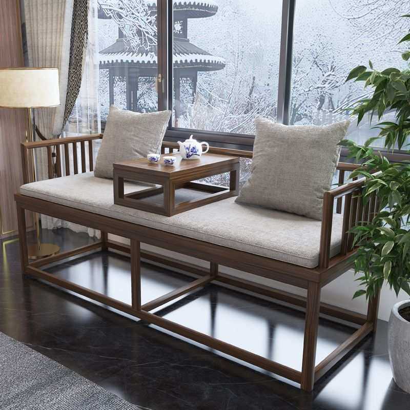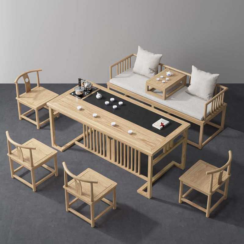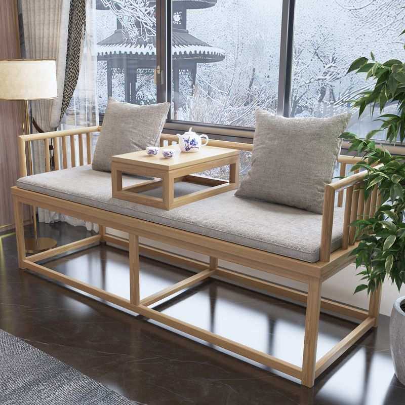 罗汉床茶桌椅组合新中式禅意实木家用办公室沙发功夫泡茶台原木色