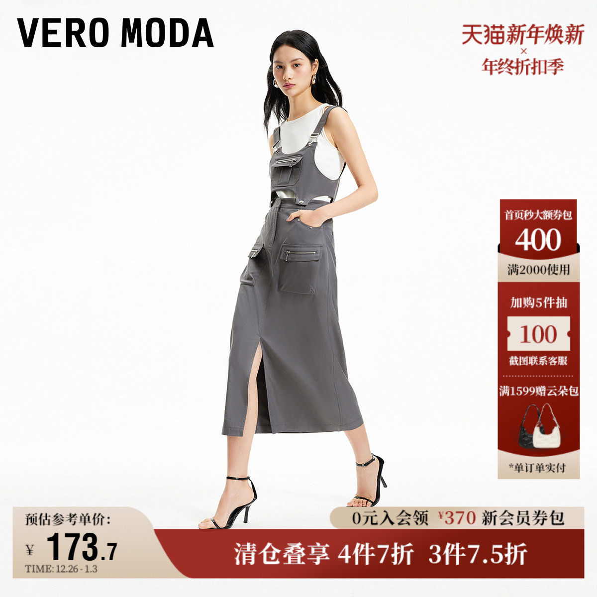 Vero Moda奥莱连衣裙秋冬新款休闲街头风可拆背带拉链显瘦流行