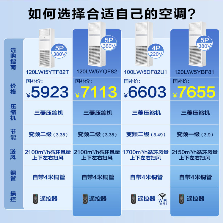 Z政府补贴海尔大5匹立式空调柜机4p家用商用饭店超市变频冷暖统帅