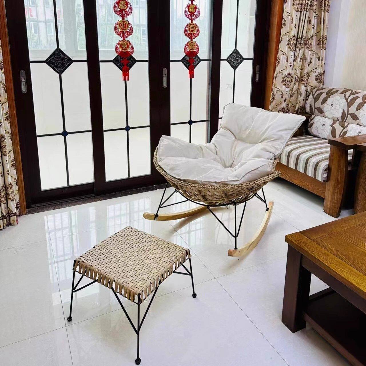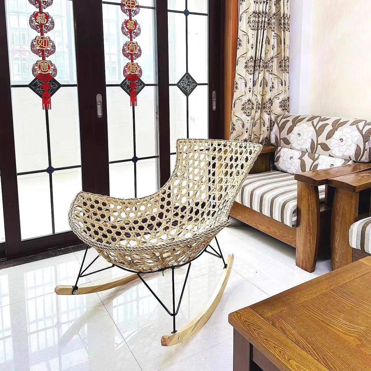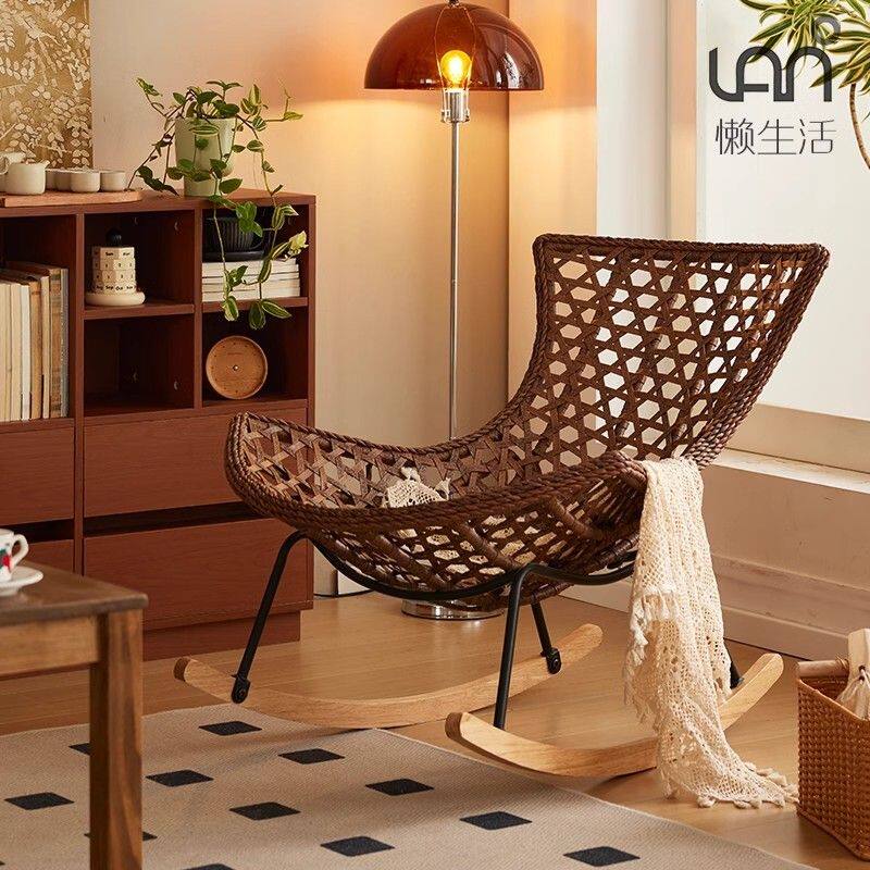 摇椅躺椅懒人沙发侘寂风阳台藤编沙发椅子家用客厅网红户外摇摇椅