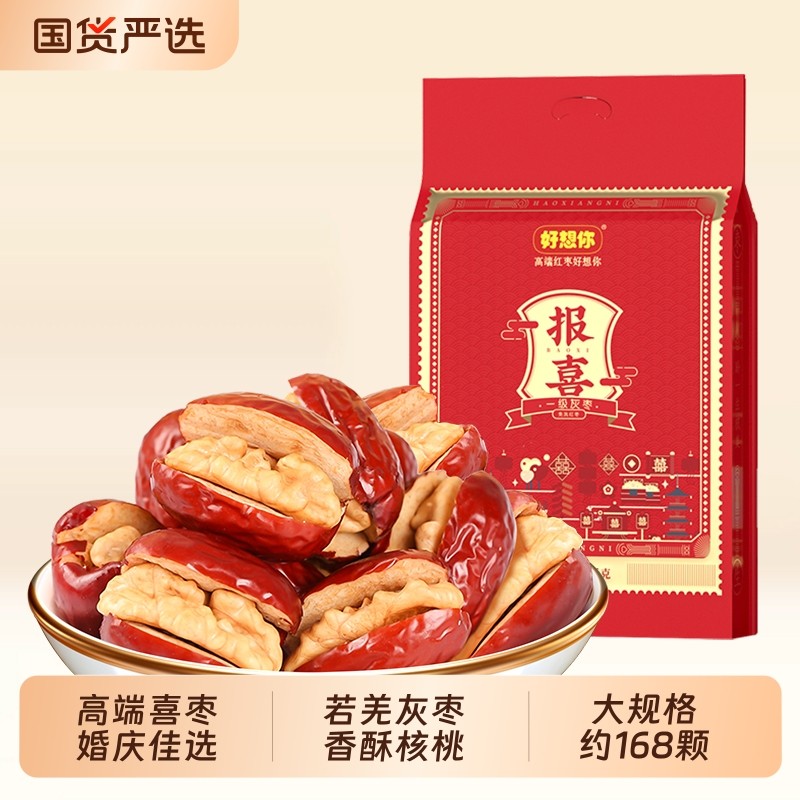 好想你报喜红枣夹核桃结婚专用婚庆喜糖喜枣喜饼散装喜礼灰枣三蒸