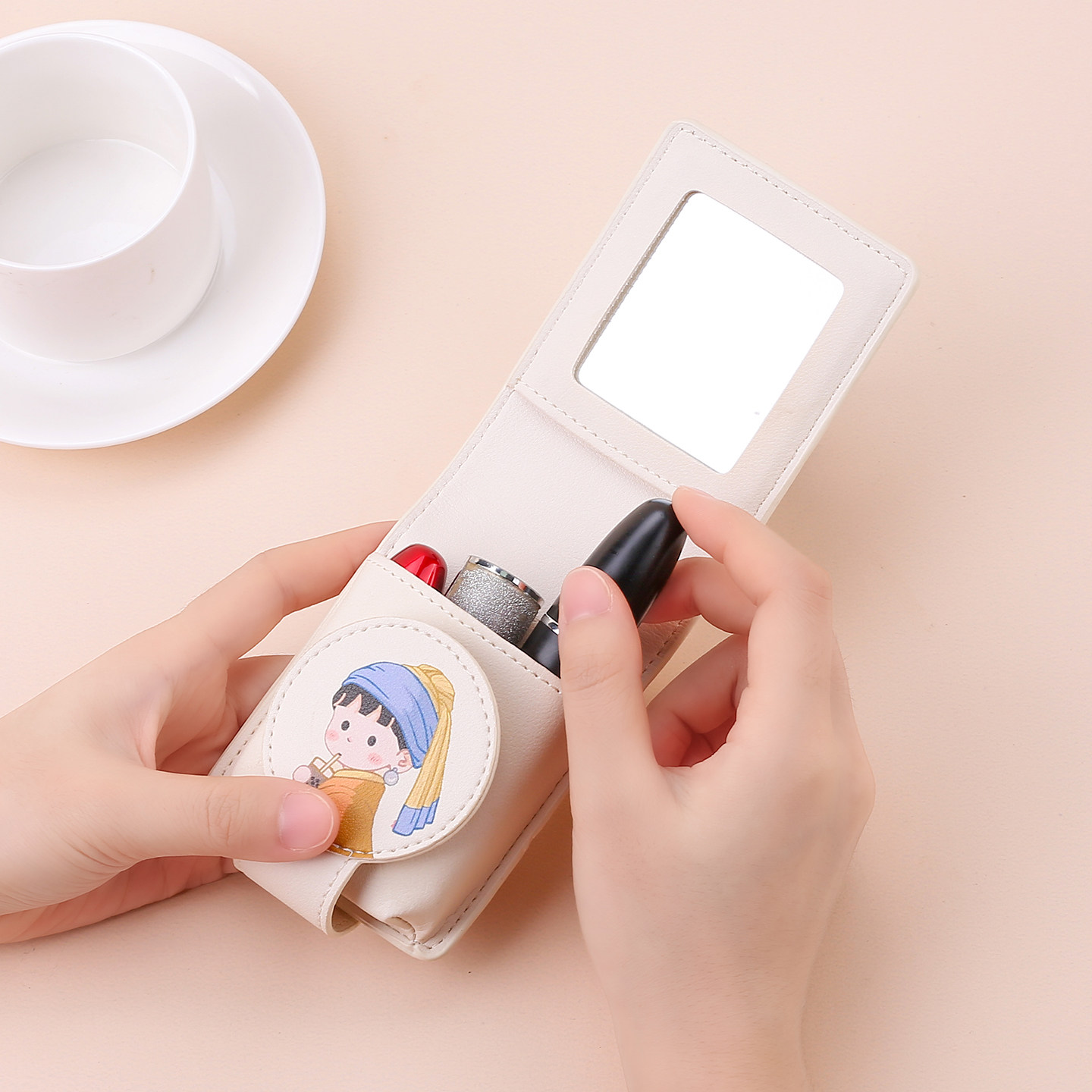 带镜子便携式收纳包口红粉饼新款可爱迷你化妆品补妆化妆包随身