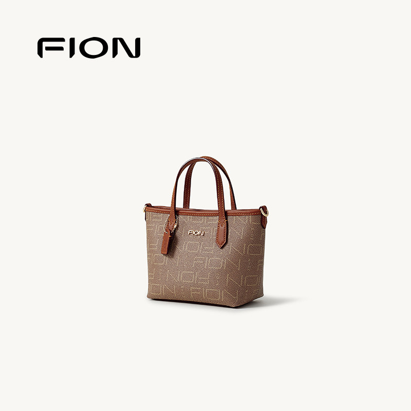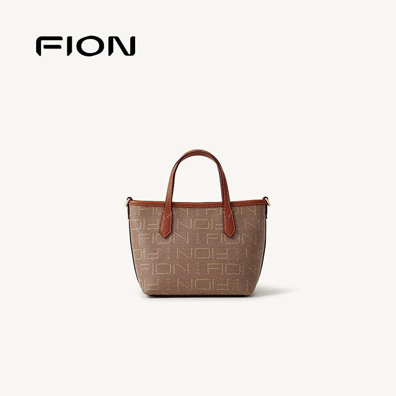 Fion/菲安妮女包老花迷你托特包休闲通勤单肩斜挎手提包饺子包包