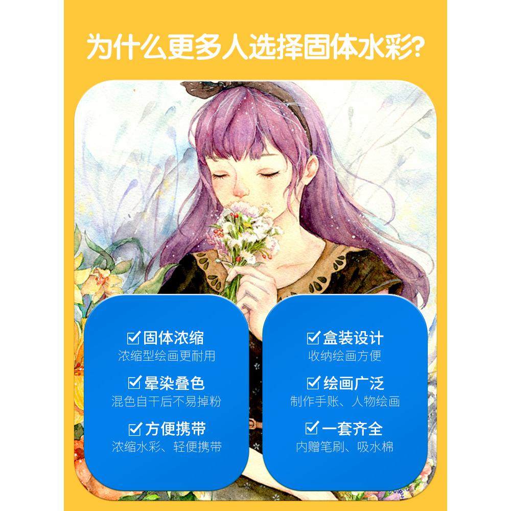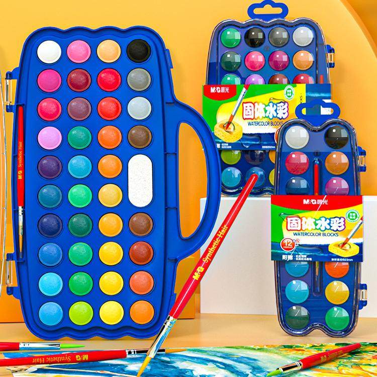 晨光固体水彩颜料套装儿童无毒可水洗彩绘涂鸦绘画工具套装小学生美术专用水彩盘调色盒固体粉饼水粉颜料