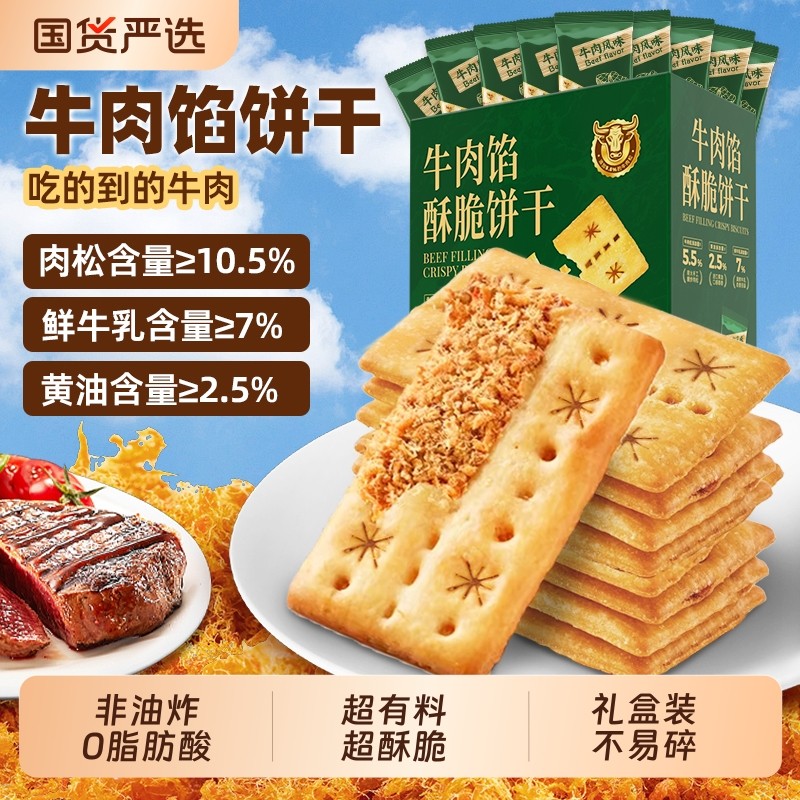 牛肉馅酥脆饼干独立包装肉松馅料夹心网红零食休闲商超正品