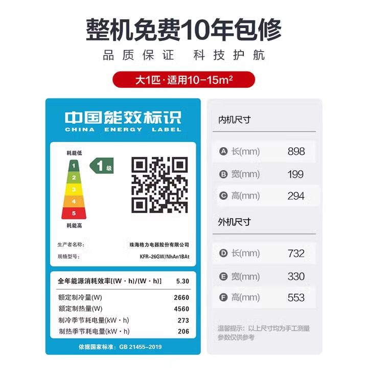 【格力官方旗舰店】 新一级能效大1匹变频冷暖智能空调挂机云霓