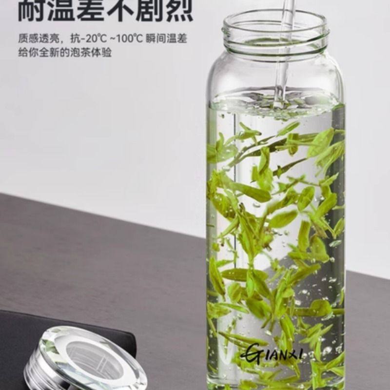捷玻璃杯大容量水杯2025新款男女士高硼硅泡茶杯茶水分离杯子单层