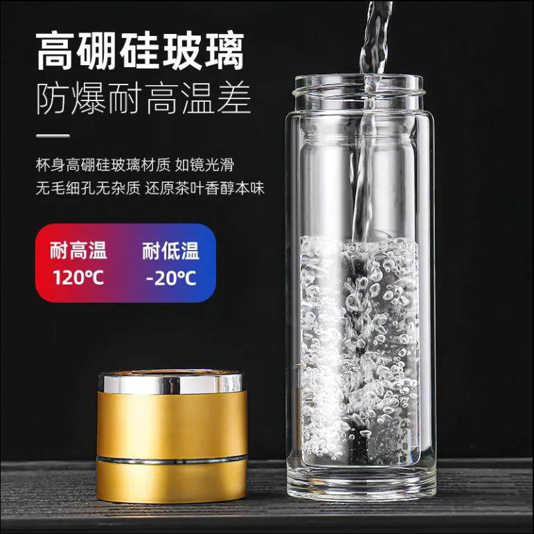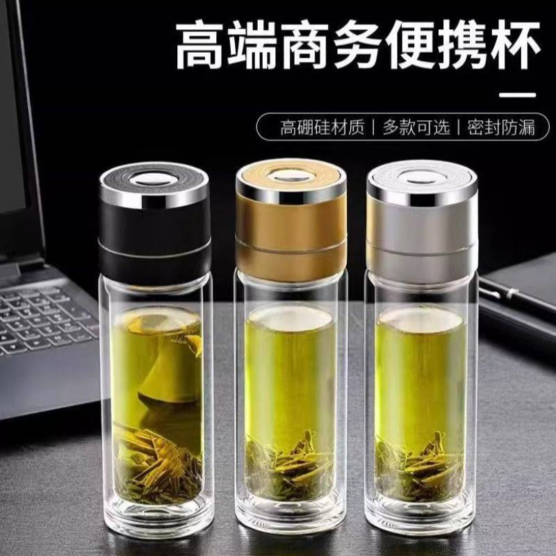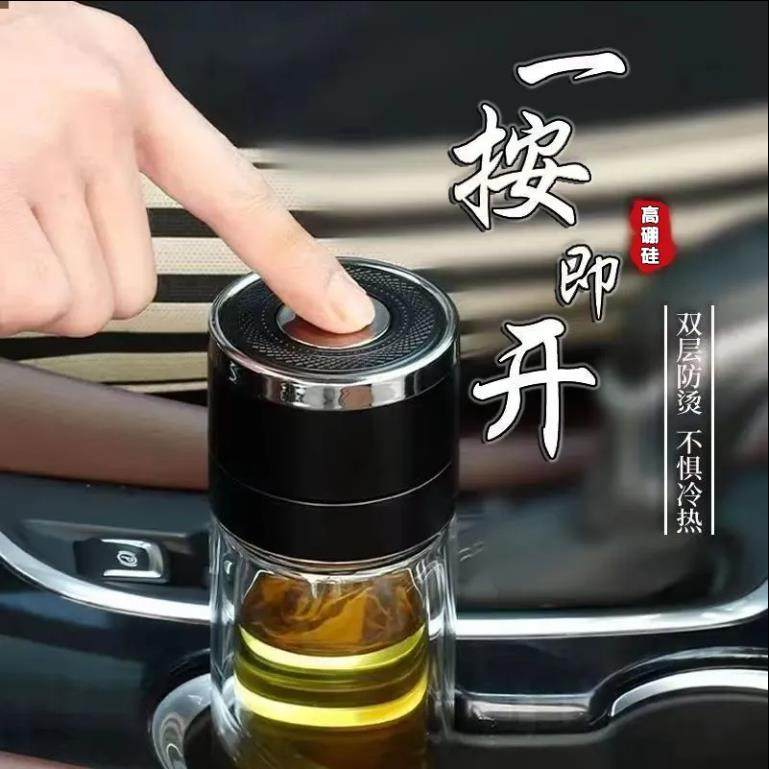 一键开盖速开杯茶水分离双层玻璃杯车载男士水杯高档泡茶杯子防爆