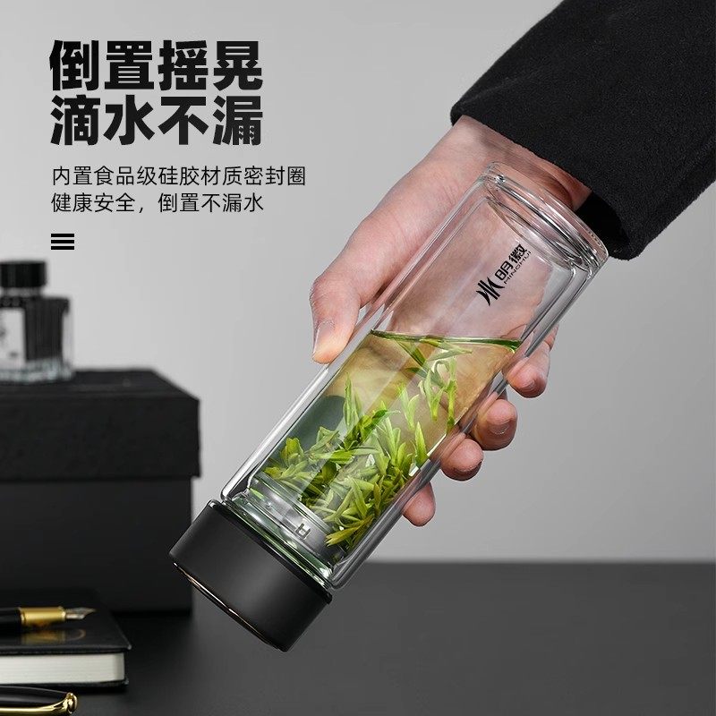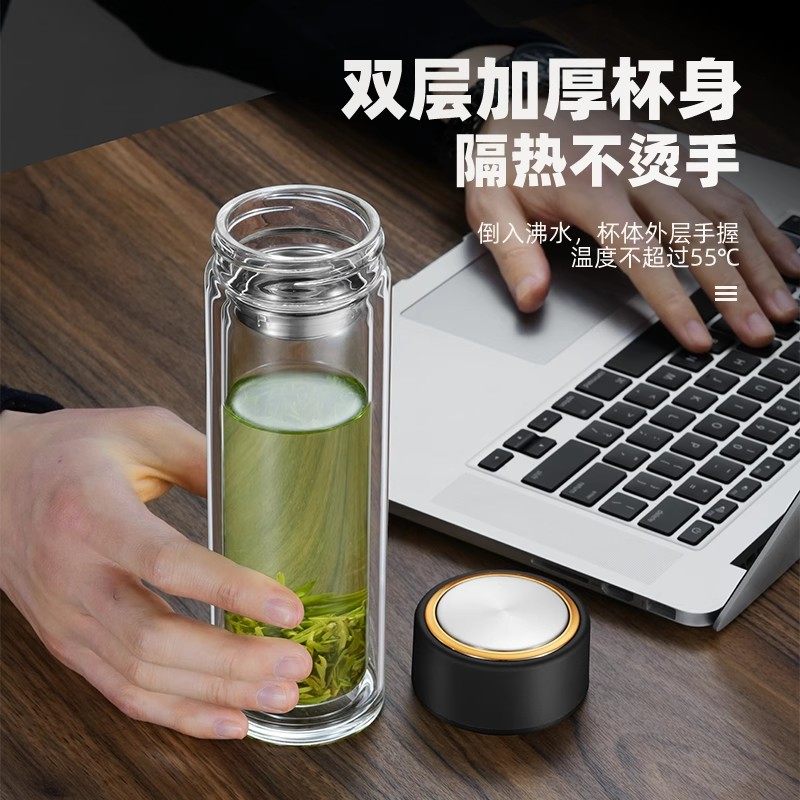 宝选一键开盖水杯车载双层玻璃杯男士泡茶保温速开茶水分离杯茶杯